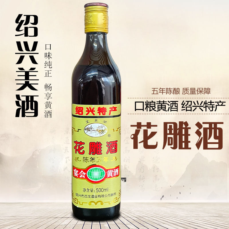 古龙绍兴花雕酒黄酒糯米酒5年陈酿五年花雕手工 500ml瓶装包邮