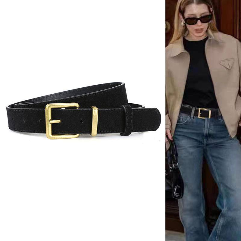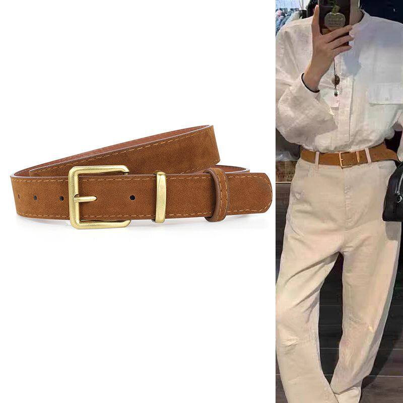 新款美拉德韩系绒皮腰带女复古磨砂宽版配牛仔裤收腰显瘦腰封裤带