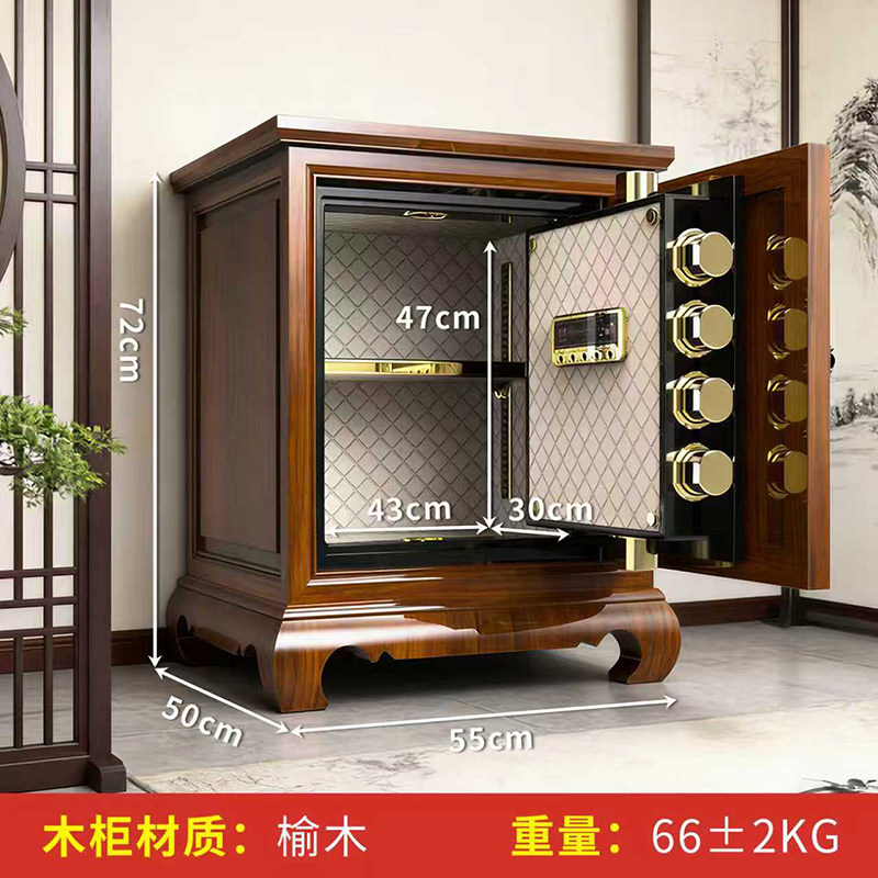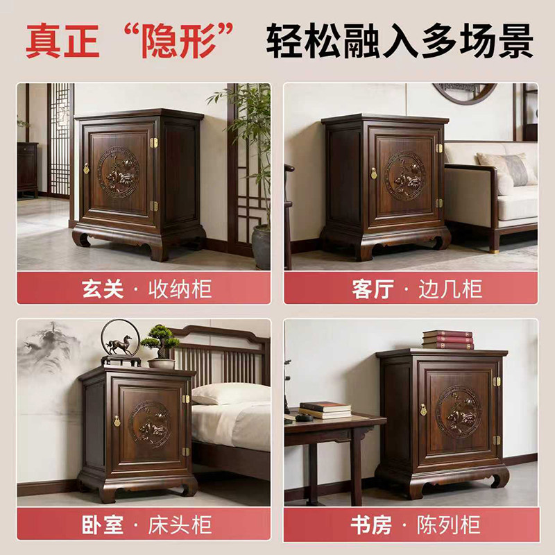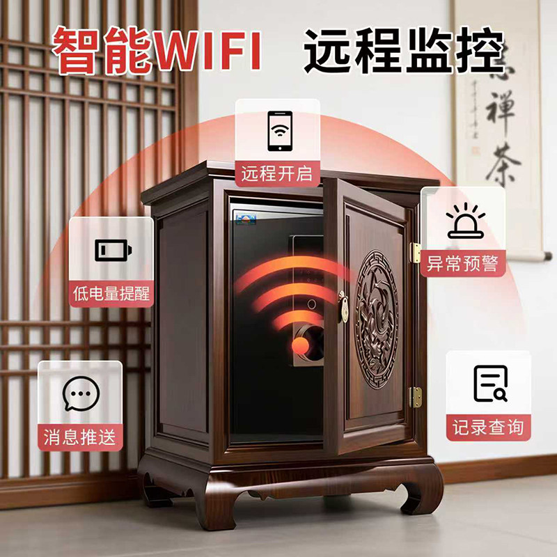虎牌新中式实木隐形保险柜家用小型100斤指纹床头柜72cm高隐藏式防盗全钢大容量智能卧室床头看不出保险箱