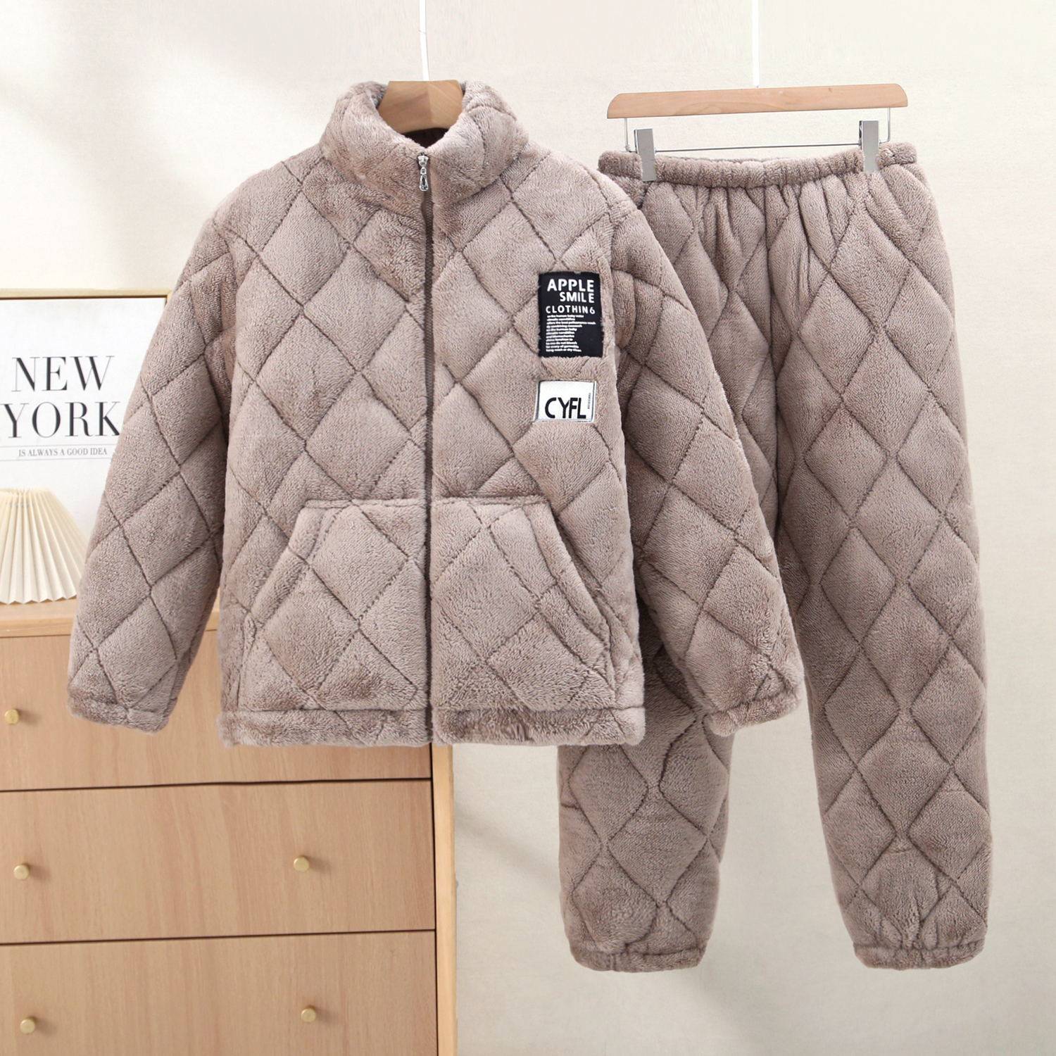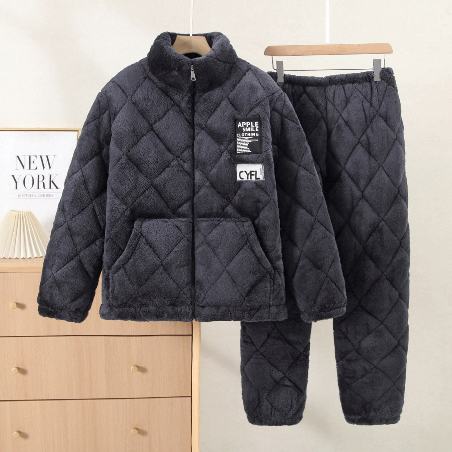 男士睡衣冬季珊瑚绒三层夹棉加厚加绒男款青少年2025年新款家居服