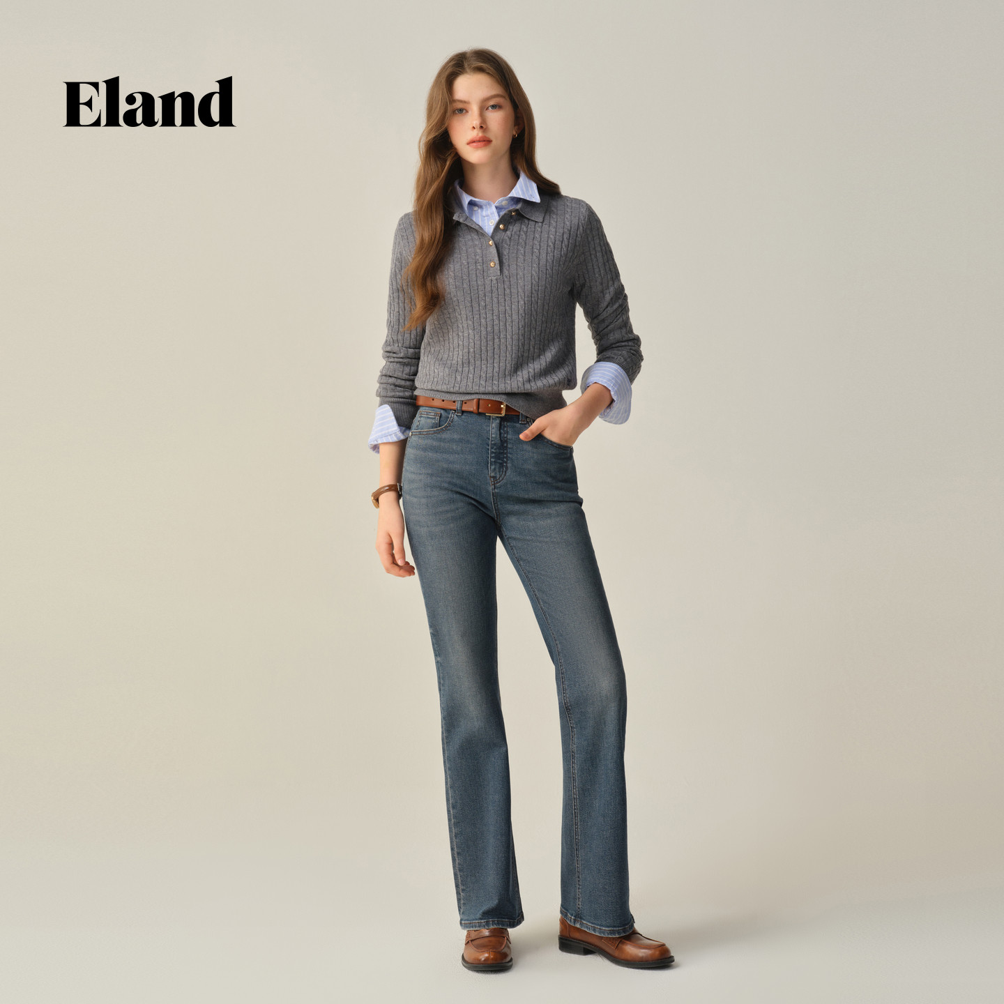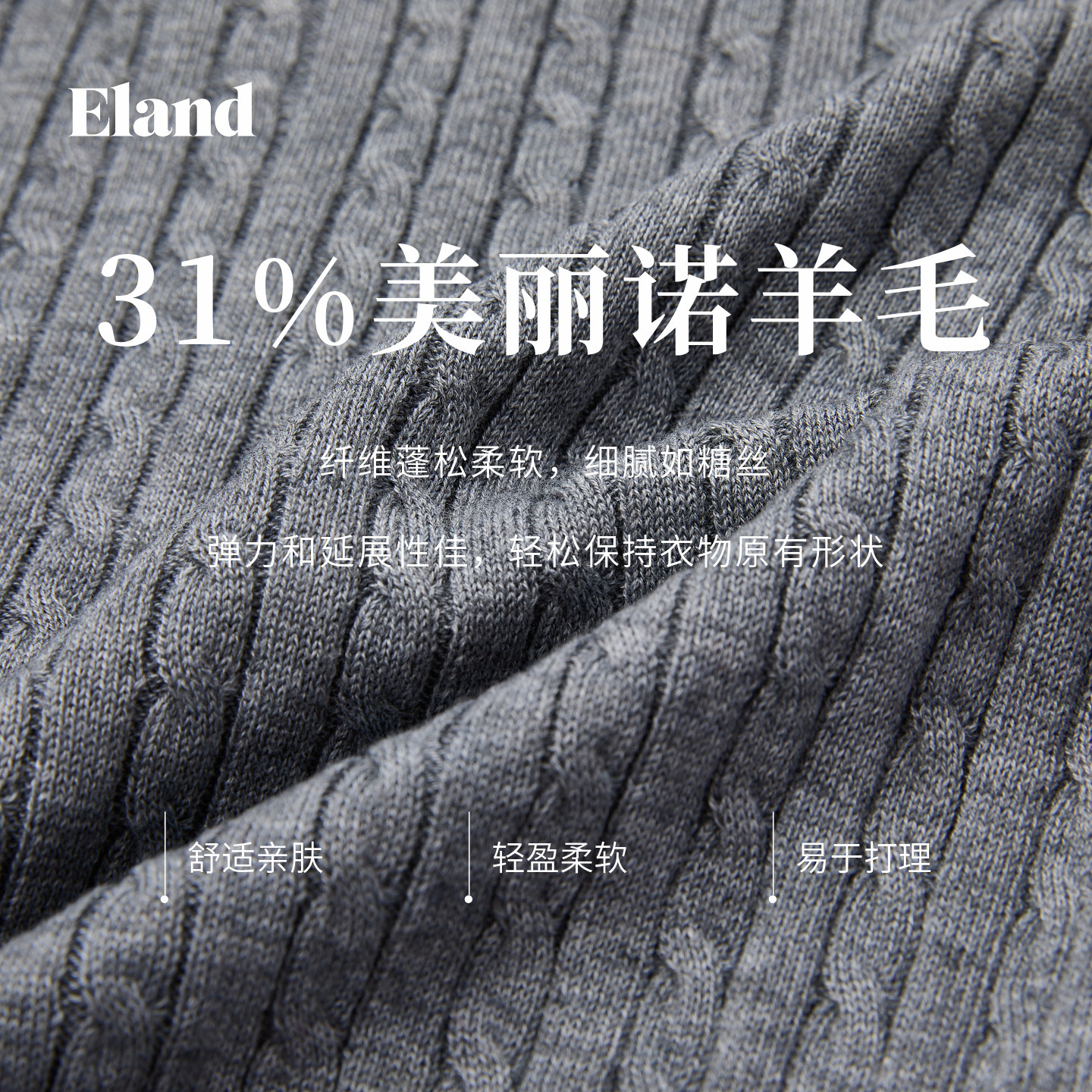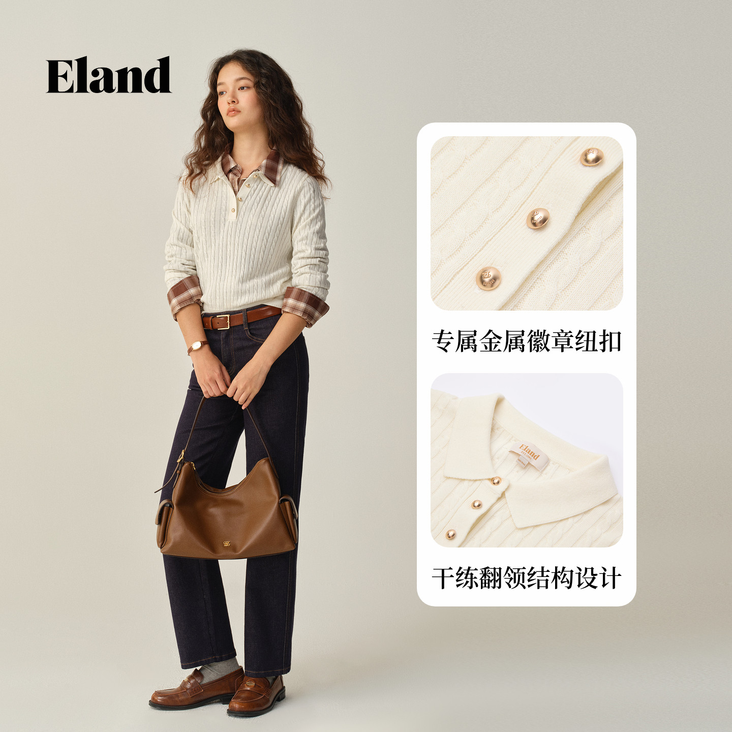 【美丽诺羊毛】Eland衣恋毛衣女翻领显瘦长袖针织衫2025冬季新款