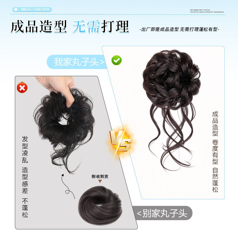 龙须丸子头假发发圈花苞头盘发神器仿真发蓬松增发自然侧扎假发圈