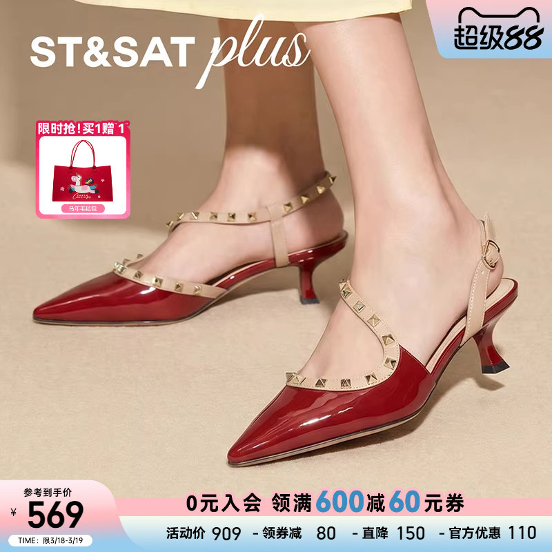 星期六一字带包头凉鞋春季新款细跟女鞋法式时装凉鞋女SSE1114012