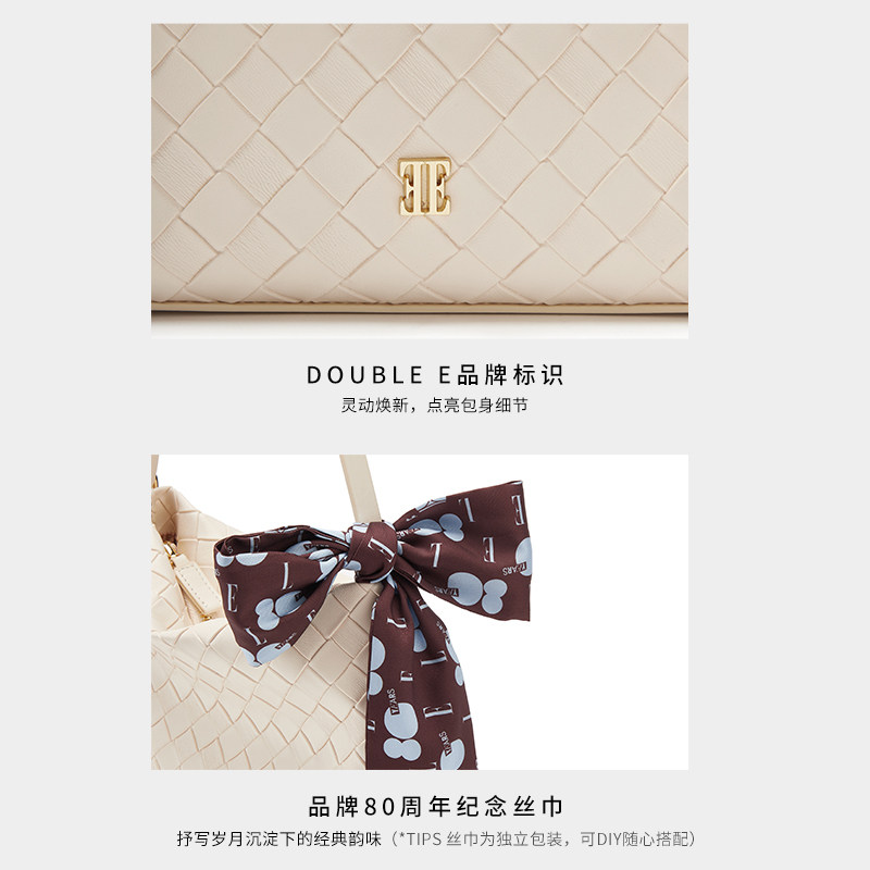 ELLE女包2025新款包包编织手提小方包菱格链条包时尚单肩腋下包女