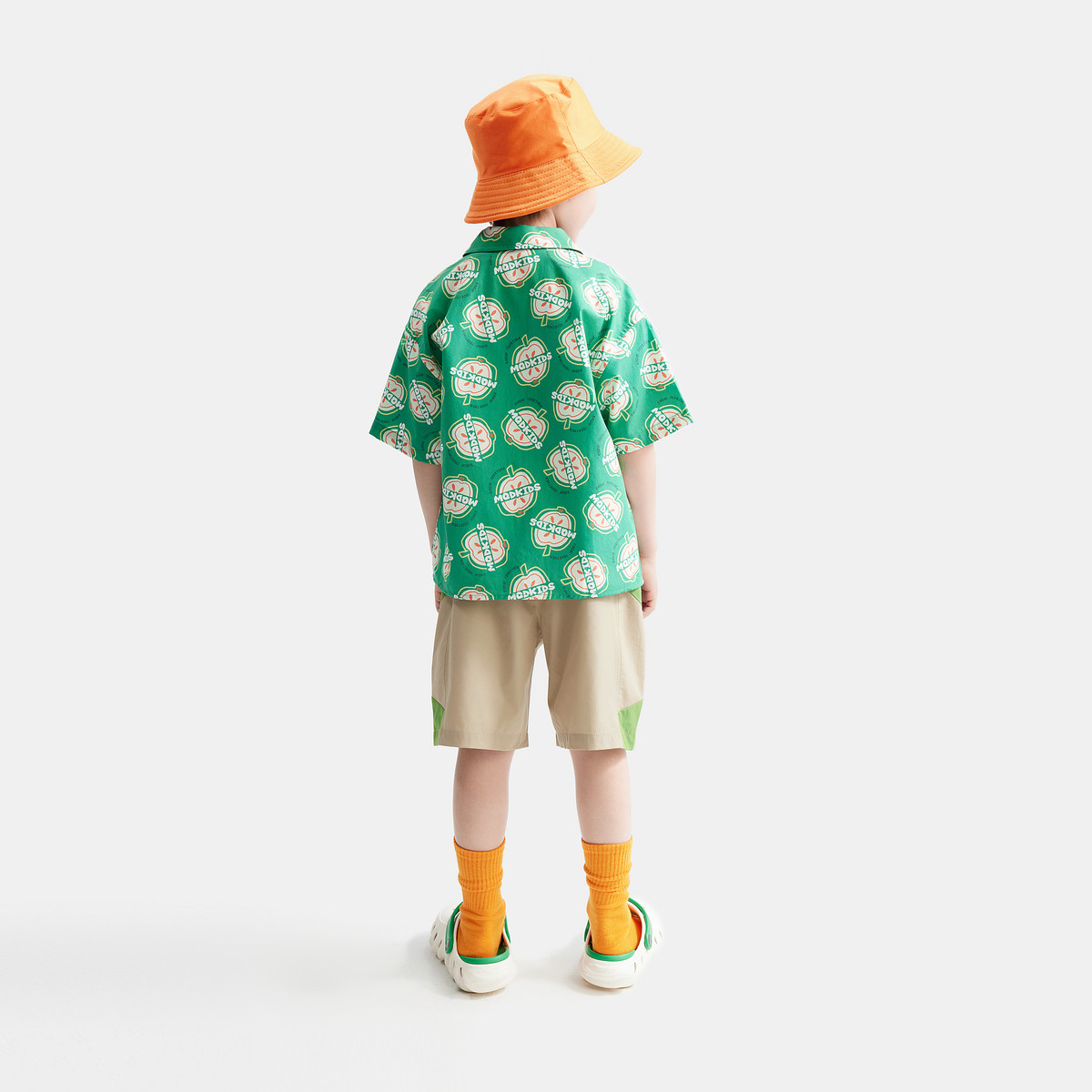 MQD童装男童短袖衬衫夏季印花衬衫水果图案潮酷满版短袖衬衣外套