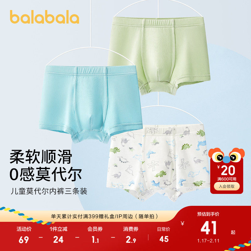 巴拉巴拉男童内裤平角莫代尔儿童四角短裤小童宝宝夏季抗菌三条装