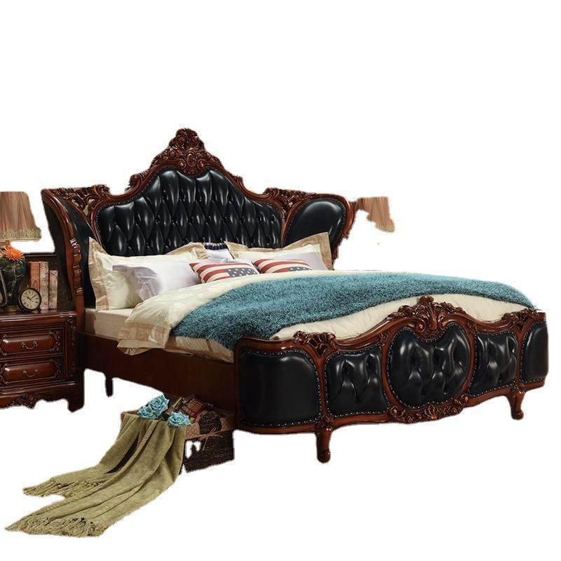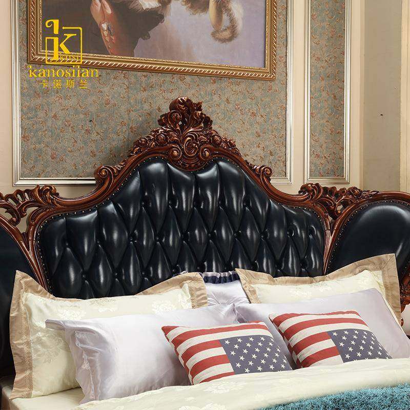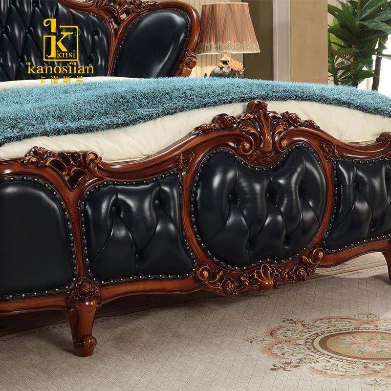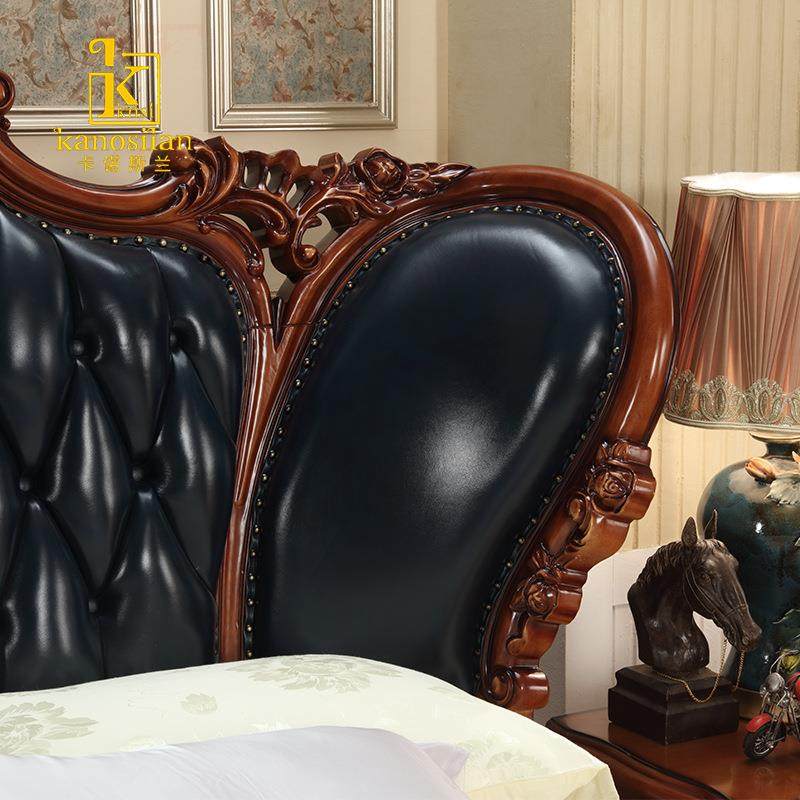 紫萱卧室家具欧式高档真皮实木床美式新古典仿古色雕花奢华大床