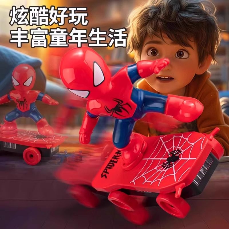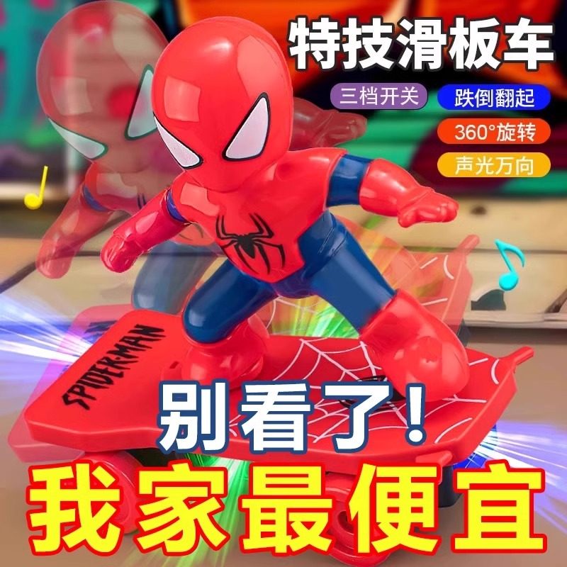 蜘蛛侠特技翻滚滑板车儿童男孩小孩非玩具电动蜘蛛人2025网红爆款