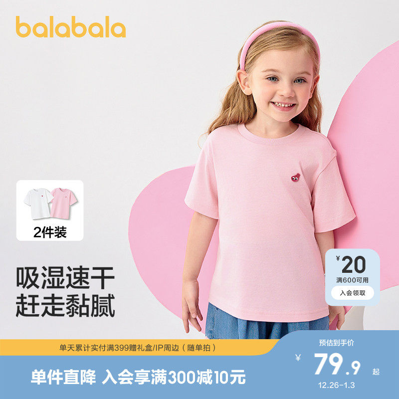 【2件装】巴拉巴拉童装儿童t恤短袖2025新款男童女童夏装吸湿速干