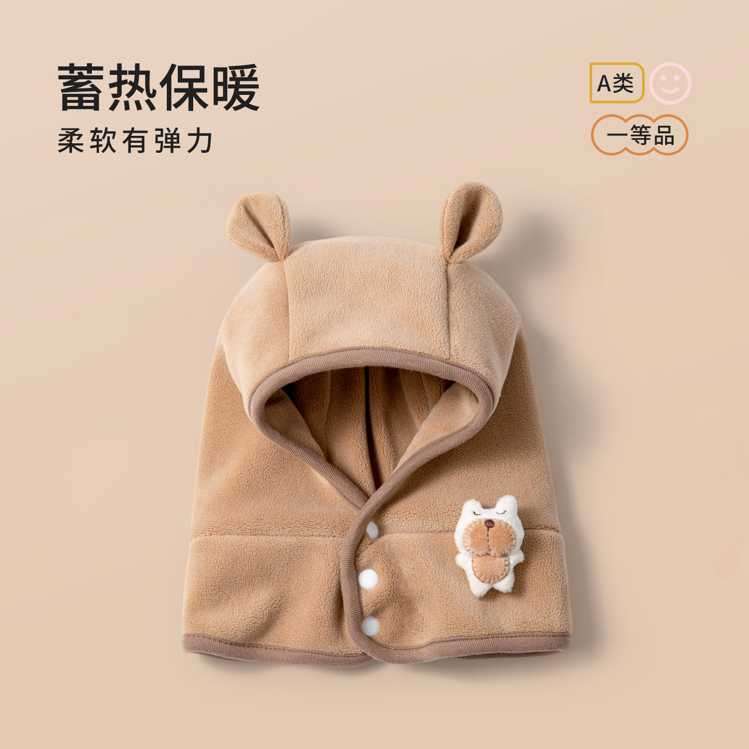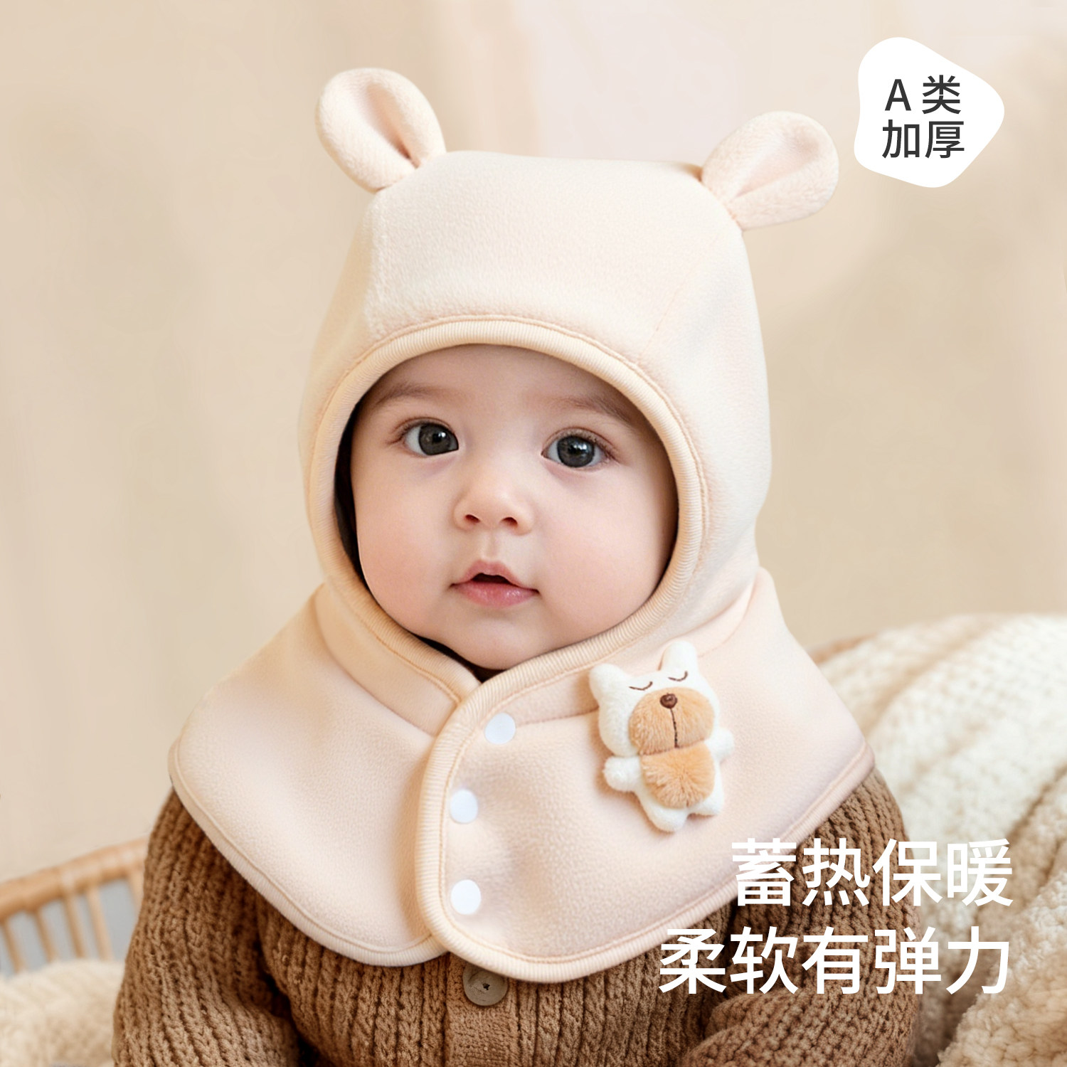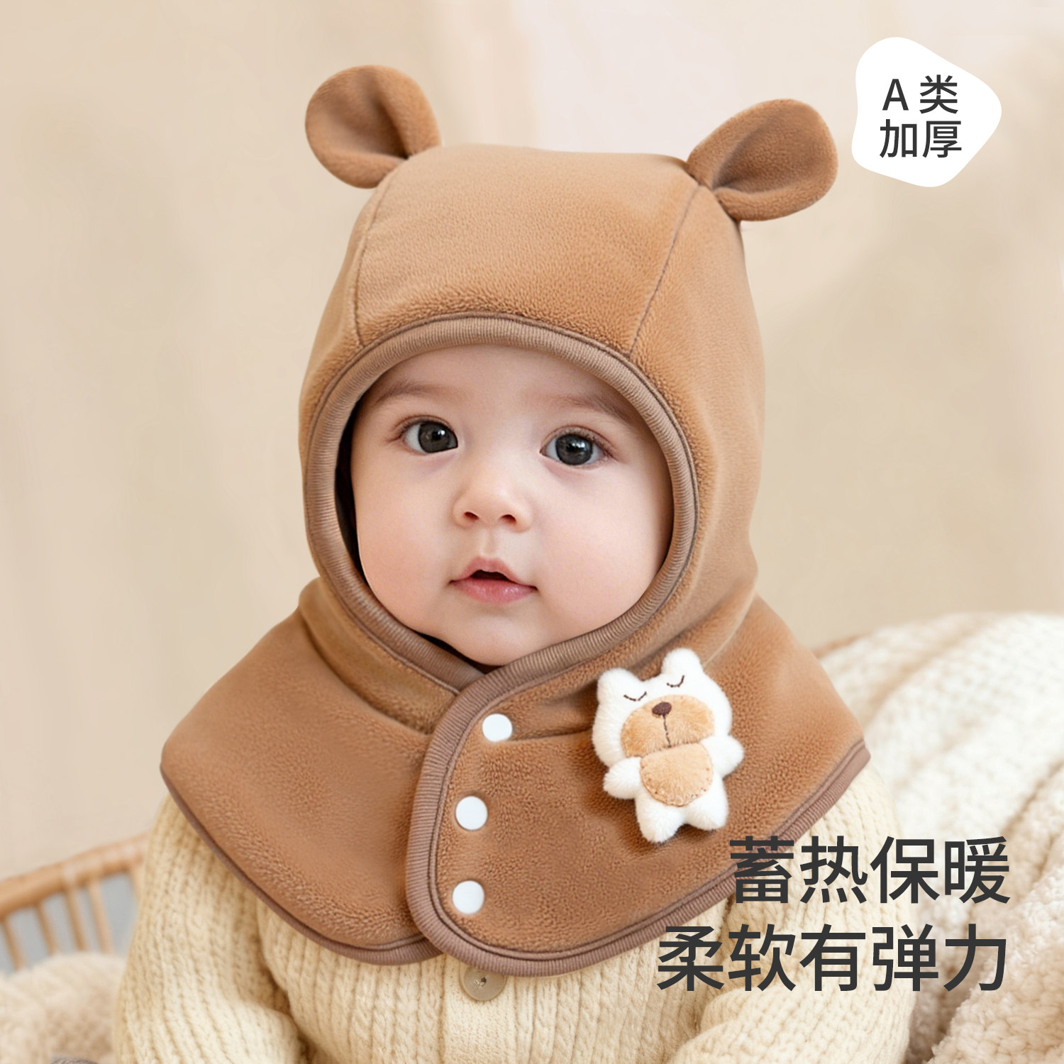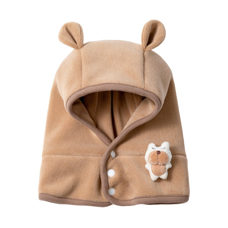 尼多熊婴儿帽子秋围脖一体宝宝毛绒帽防风护耳帽冬季保暖婴幼儿帽
