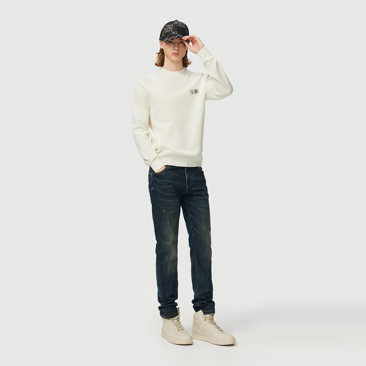 王安宇同款森马牛仔裤男做旧复古阔感弯刀裤宽松弧形裤2025冬新款