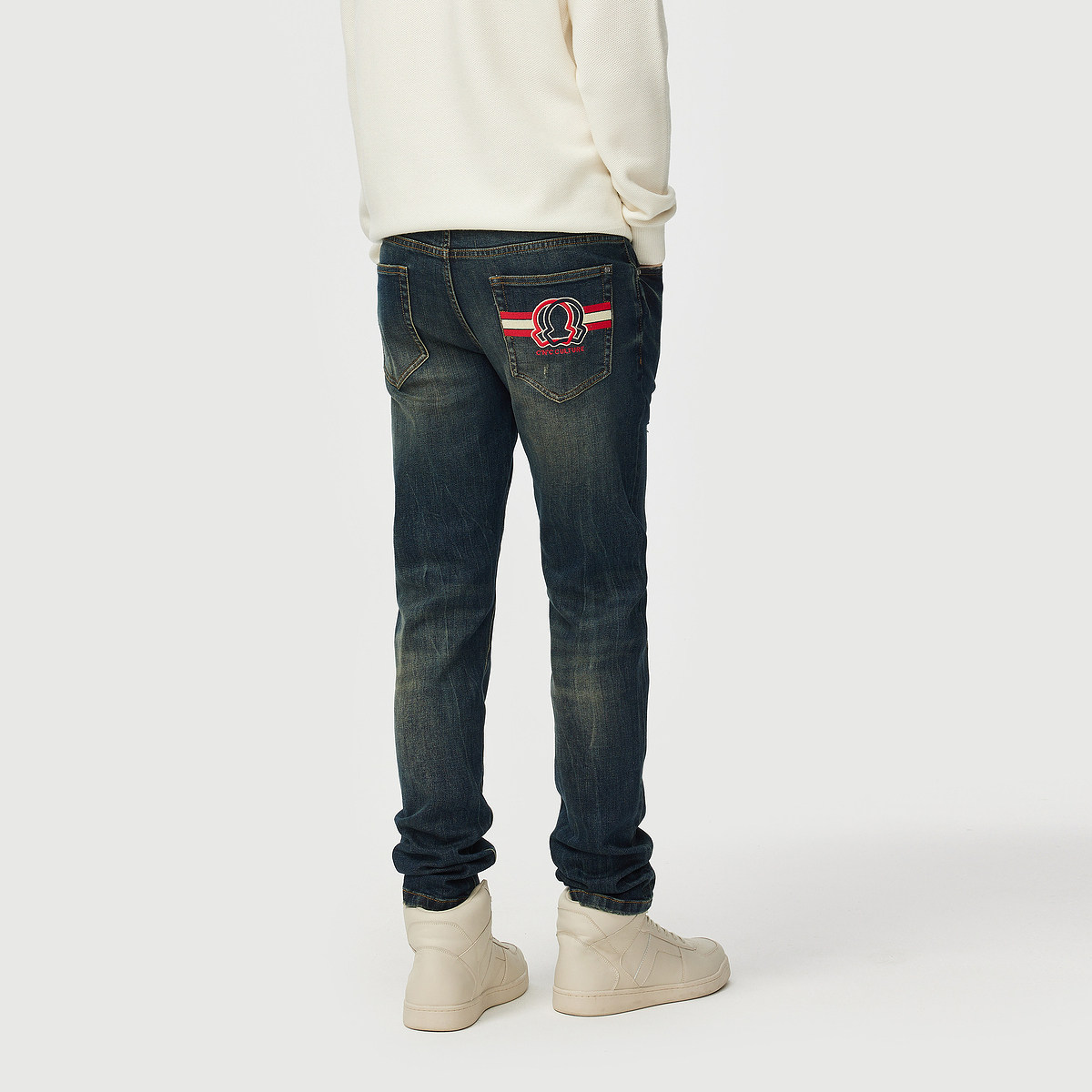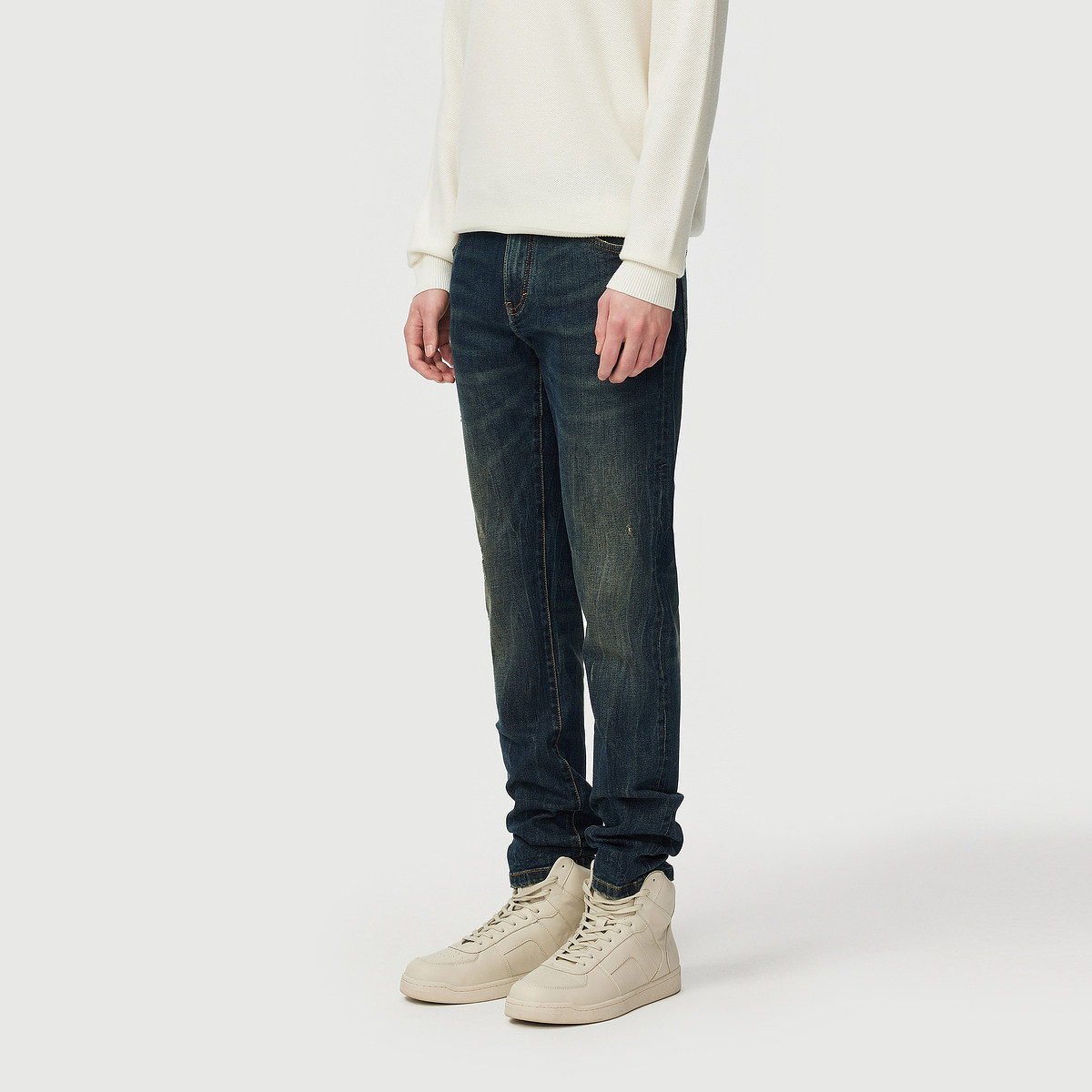 CNC男装品牌直筒蓝色牛仔裤男款轻奢修身简约百搭秋冬休闲长裤