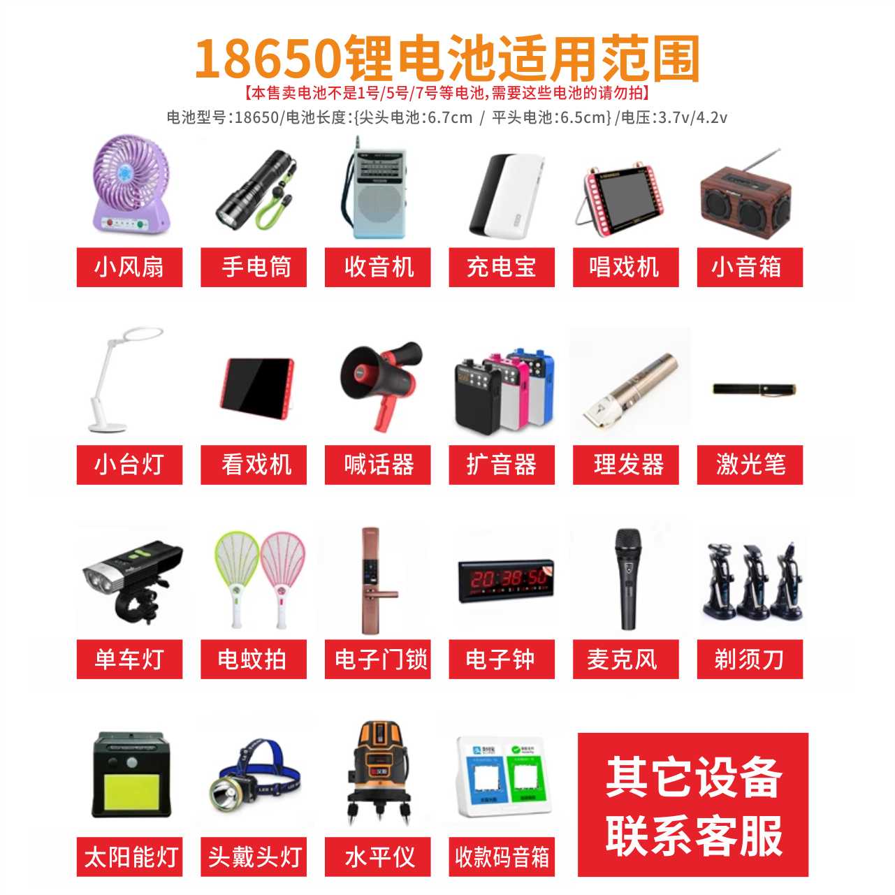 18650锂电池3.7V大容量可充电强光手电筒头灯小风扇扩音器通用4.2
