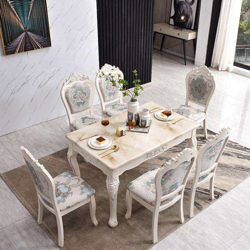 欧式大理石餐桌椅组合餐厅成套家具桌子小户型餐桌长方形餐桌家用