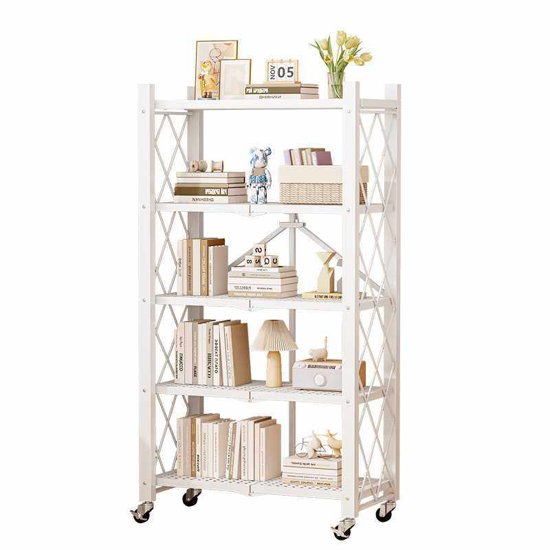 免安装折叠书架置物架落地可移动带轮小推车收纳多层儿童铁艺书柜