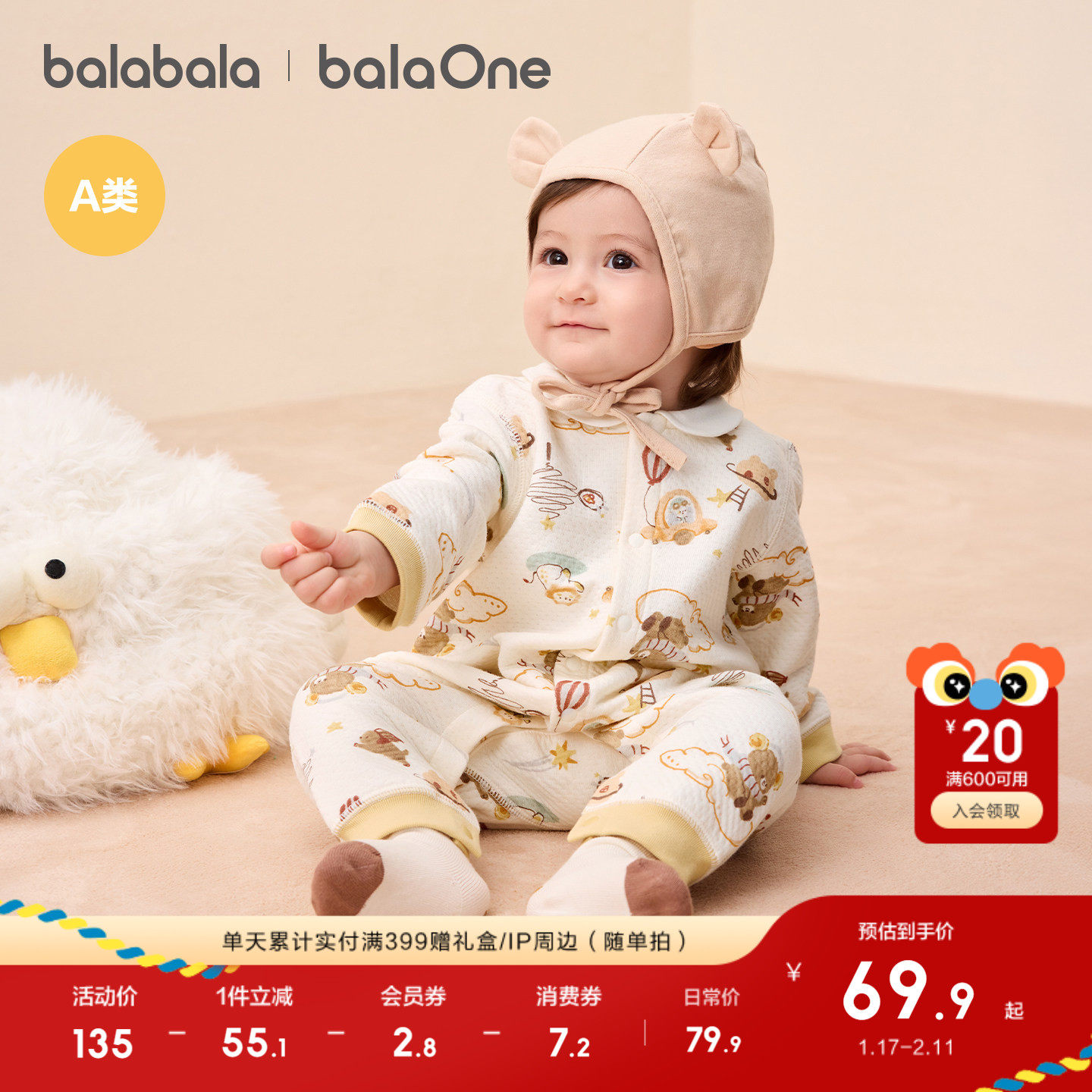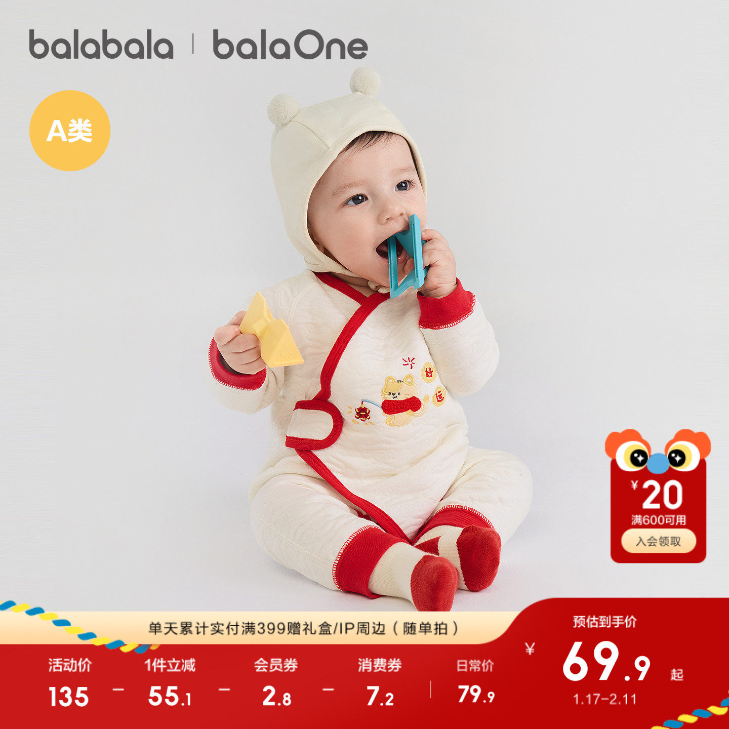 巴拉巴拉新生婴儿连体衣冬装2025款秋冬宝宝A类棉服内着哈衣爬服
