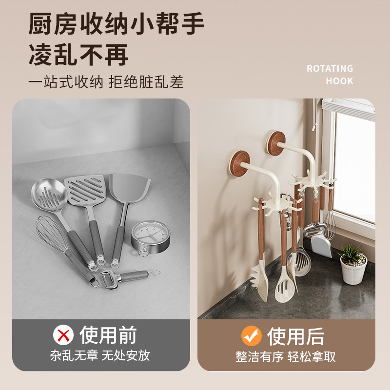 厨房旋转挂钩锅铲架台面置物架挂勺子铲子支架汤勺收纳架免打孔