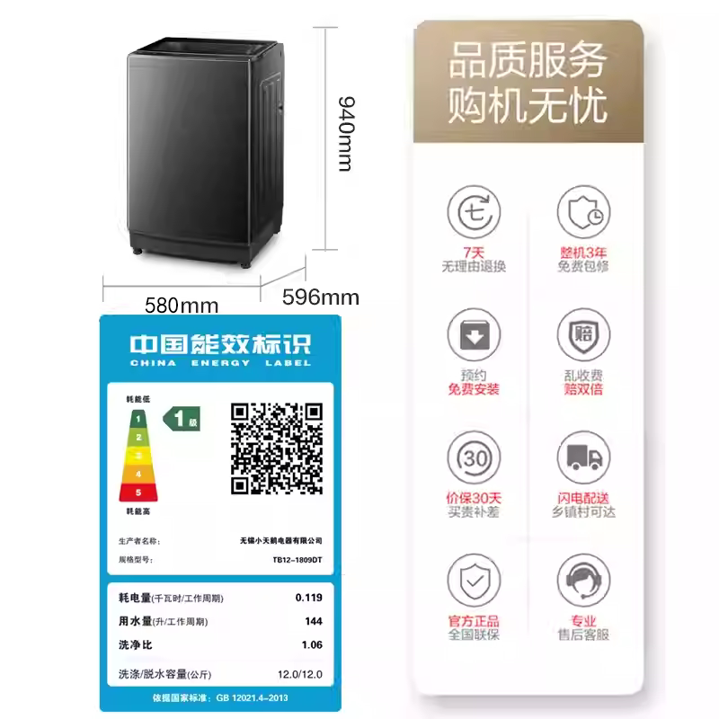 小天鹅波轮洗衣机12公斤大容量家用全自动免清洗直驱变频TB12U21