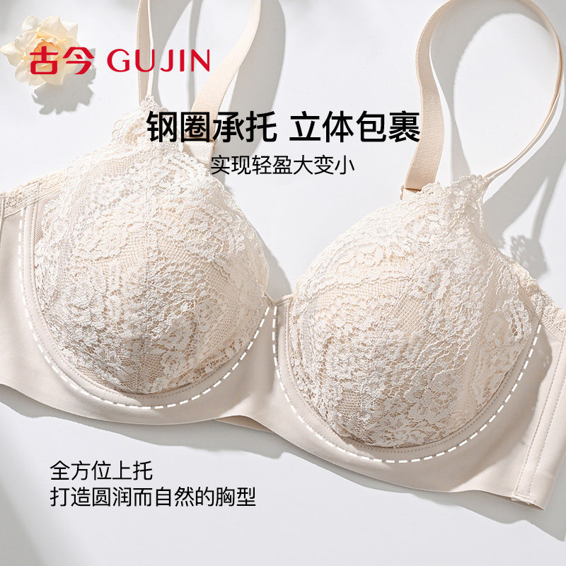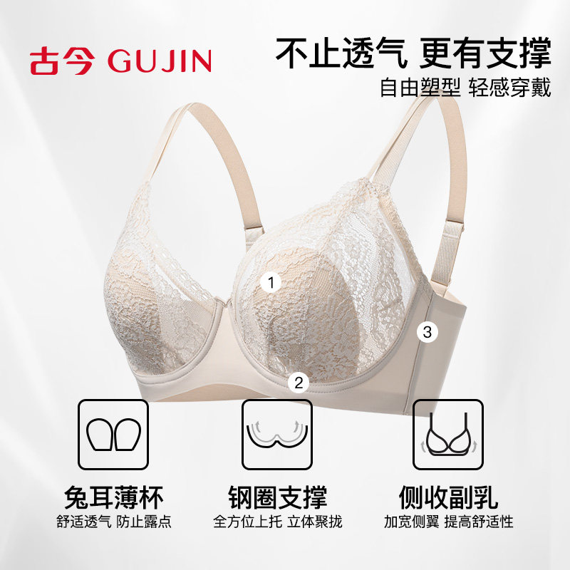古今兔耳杯内衣女蕾丝大胸显小胸聚拢收副乳防下垂钢圈承托文胸罩