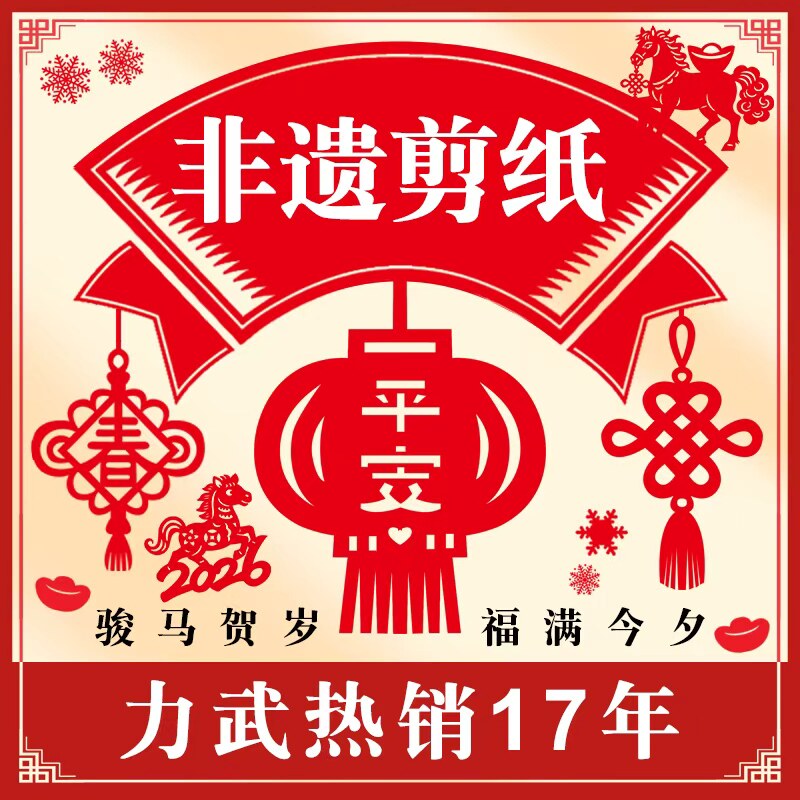 剪纸儿童手工中国风2026马年传统图案底稿幼儿园材料包diy新年十二生肖非遗大红纸春节福字小学生专用窗花纸