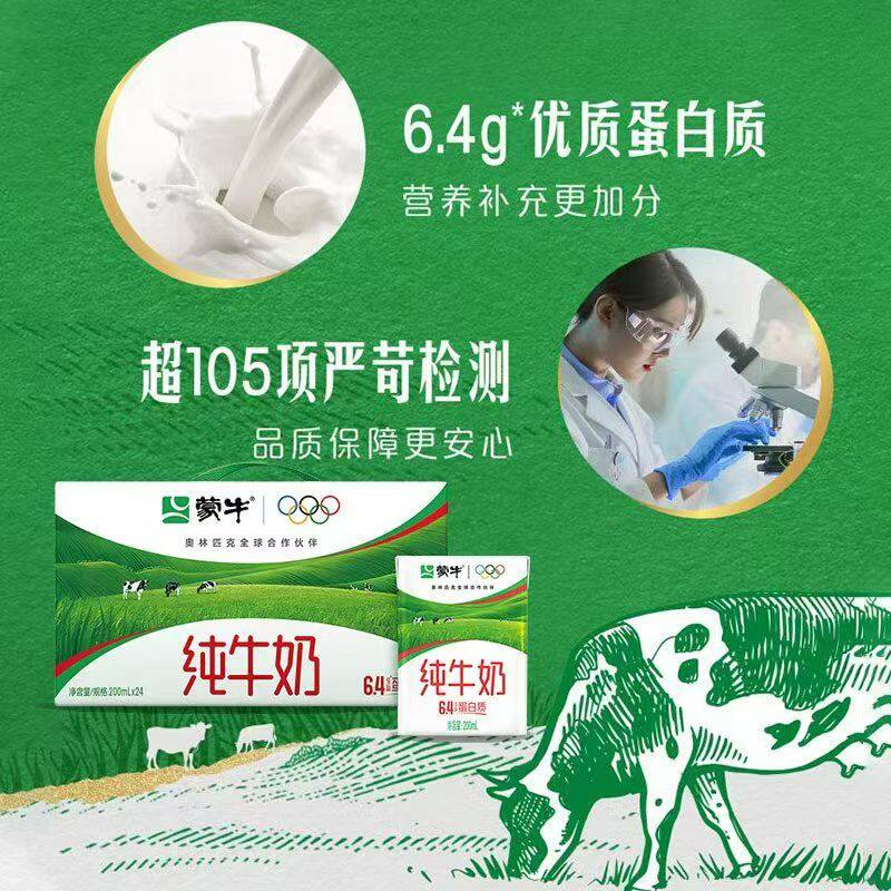 蒙牛纯牛奶6.4g优质蛋白质 200mL*24盒