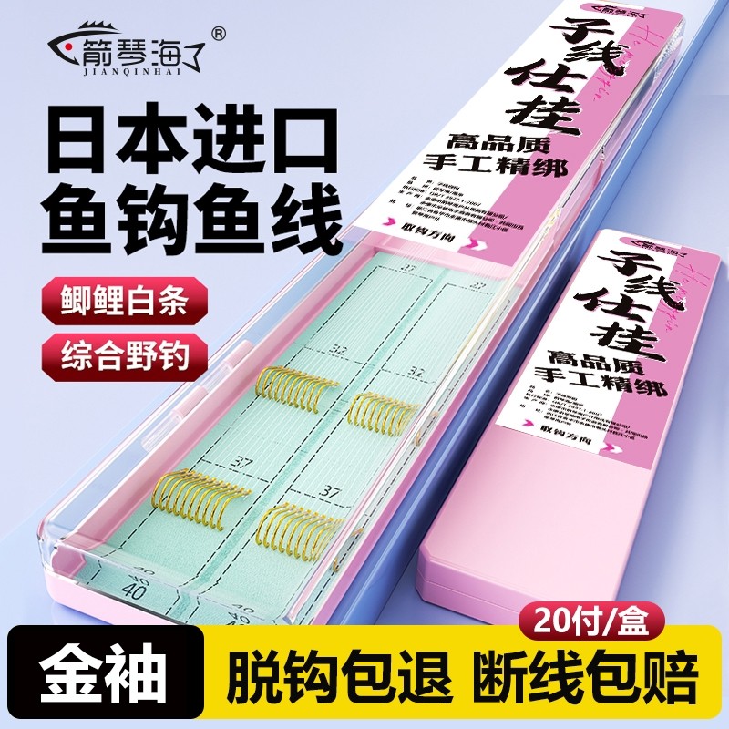 箭琴海金袖子线双钩伊势尼新关东成品海夕野钓鱼钩盒套装20付无刺