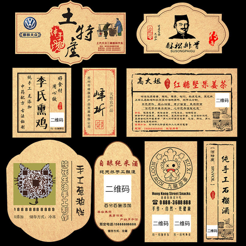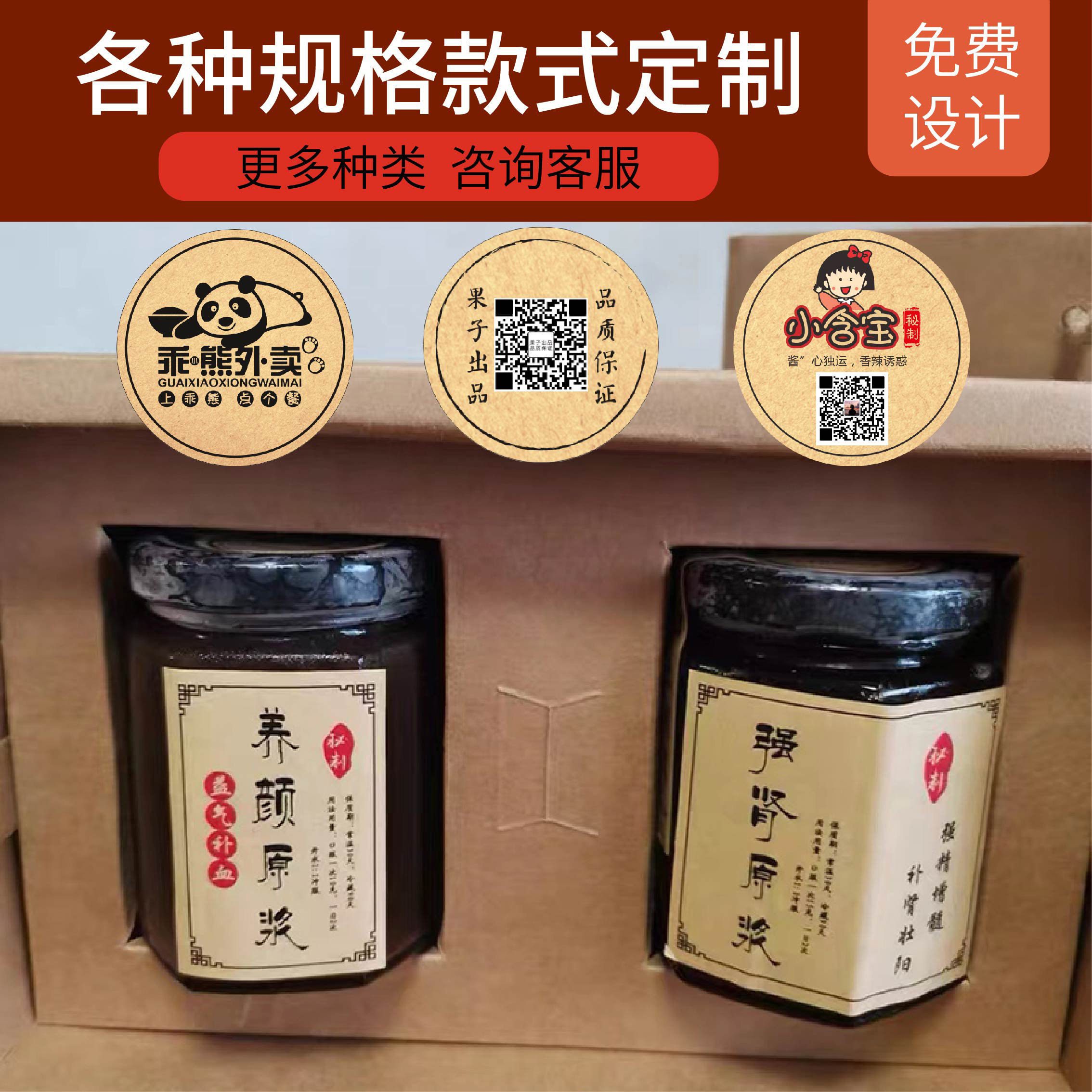 牛皮纸不干胶贴纸定制logo设计商标自粘家乡土特产酱菜咸菜土蜂蜜萝卜干小吃辣椒酱罐装食品包装广告标签印刷