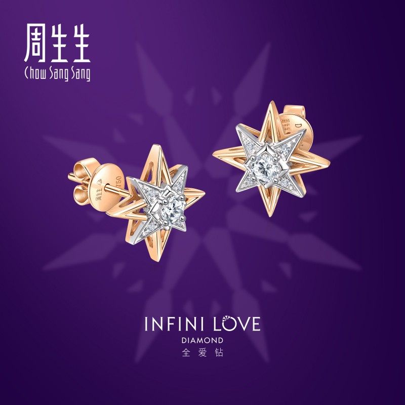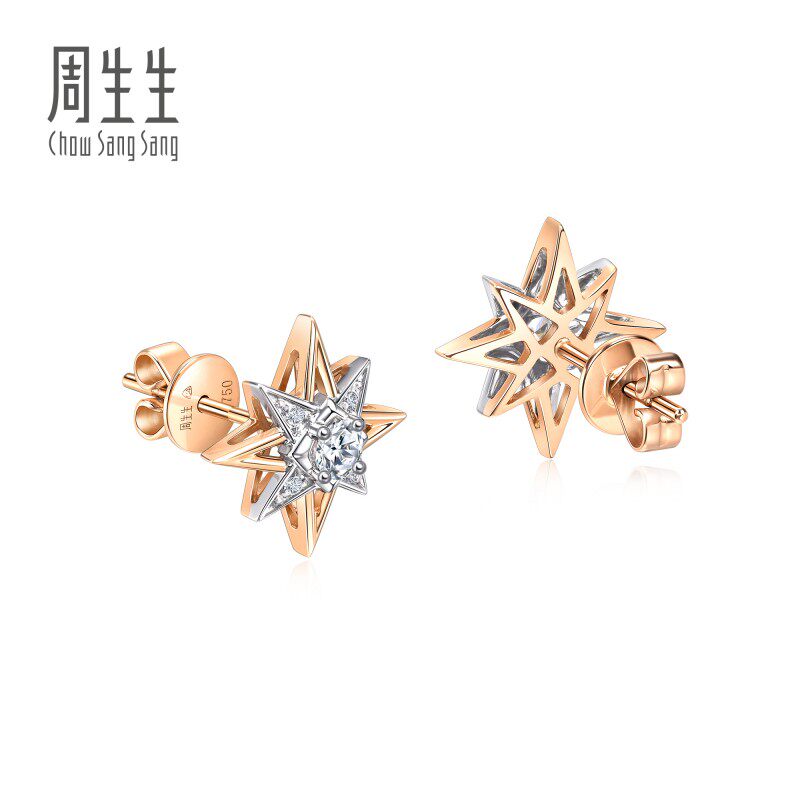 周生生全爱钻北极星钻石耳钉18K白红分色黄金耳饰送女友93423E