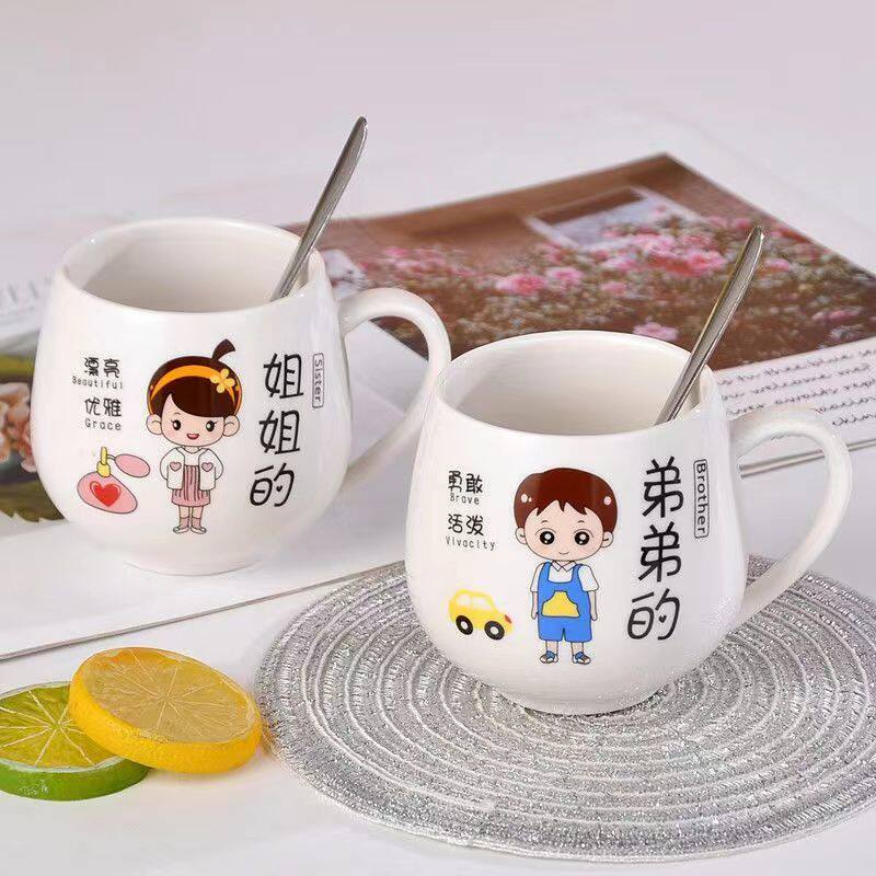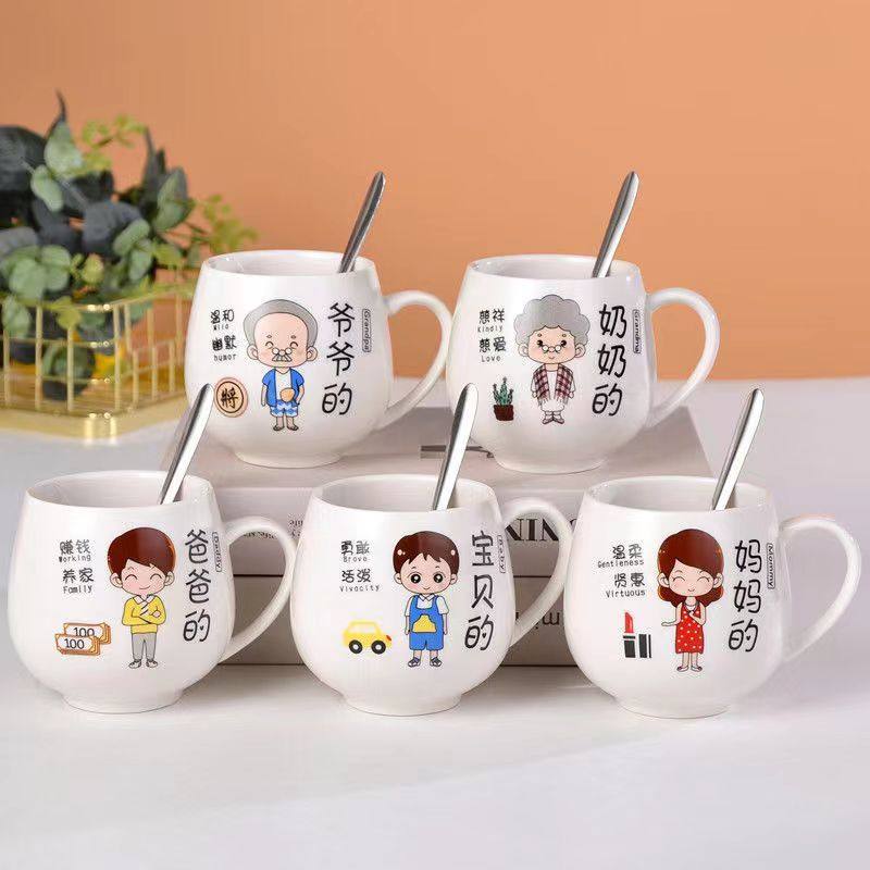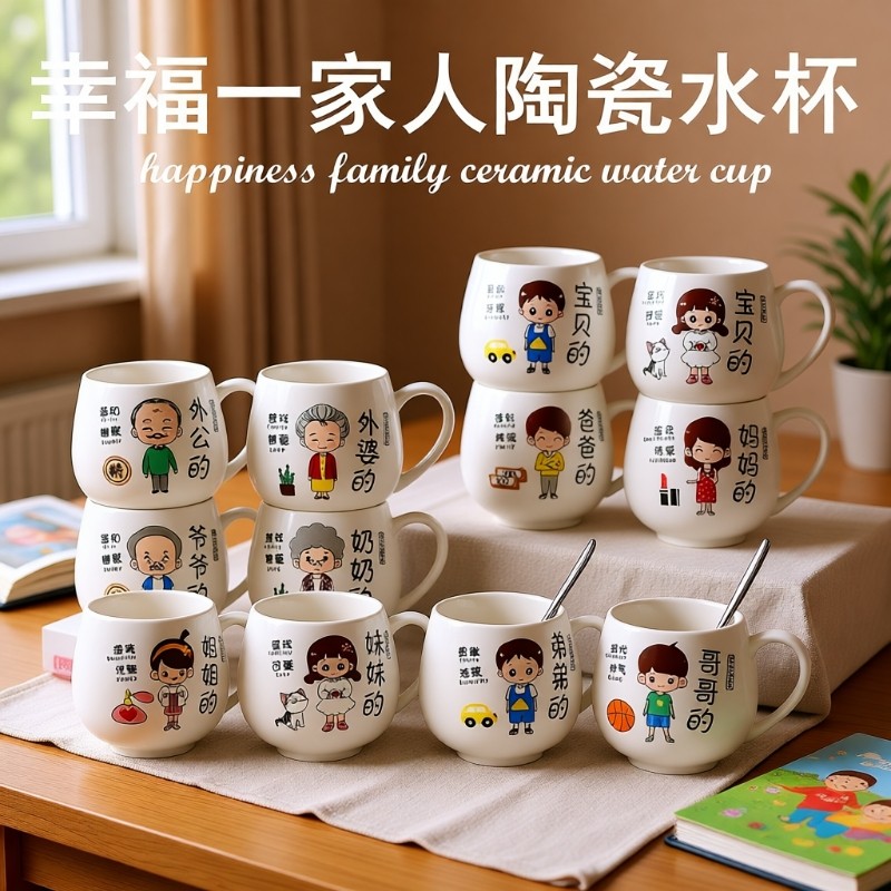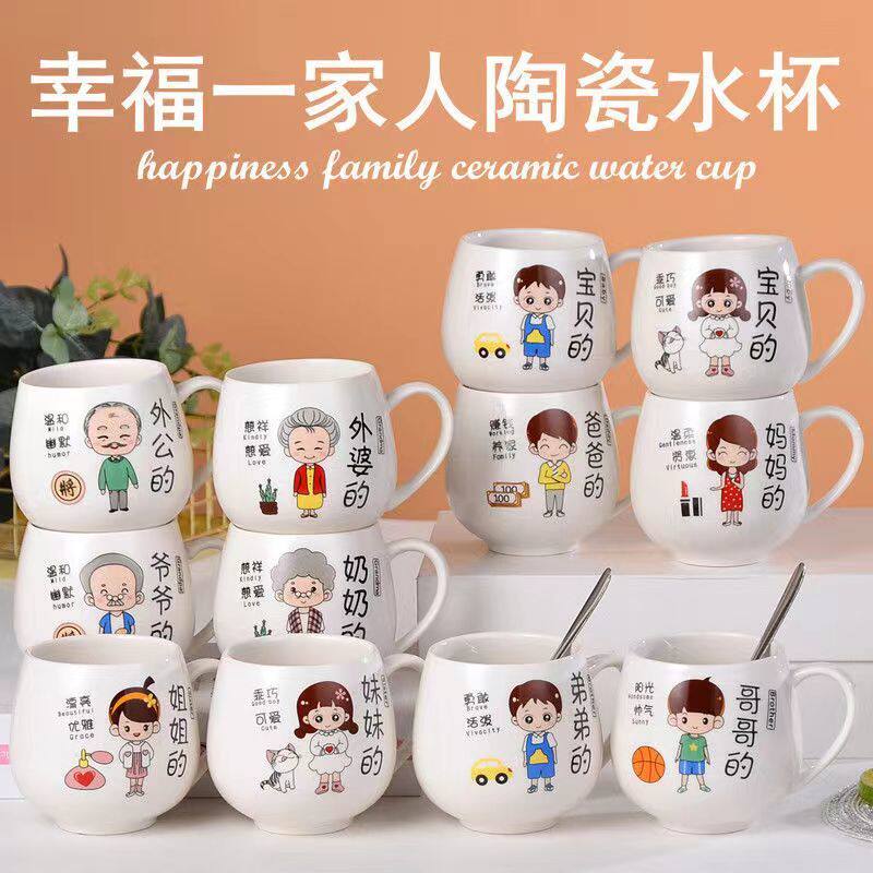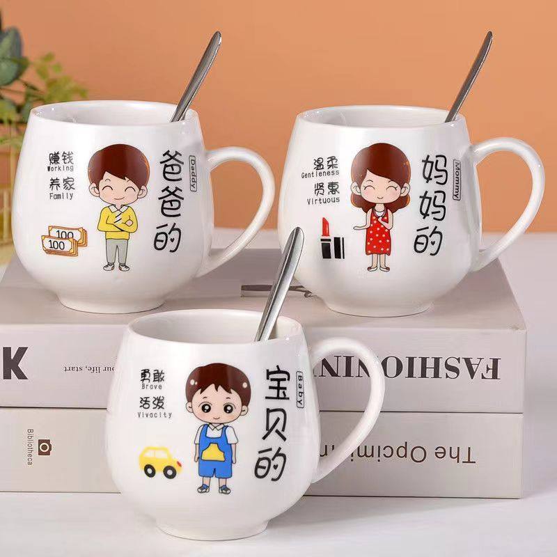 家用家庭装杯子喝水一家人水杯马克杯亲子卡通杯子牛奶杯可爱陶瓷