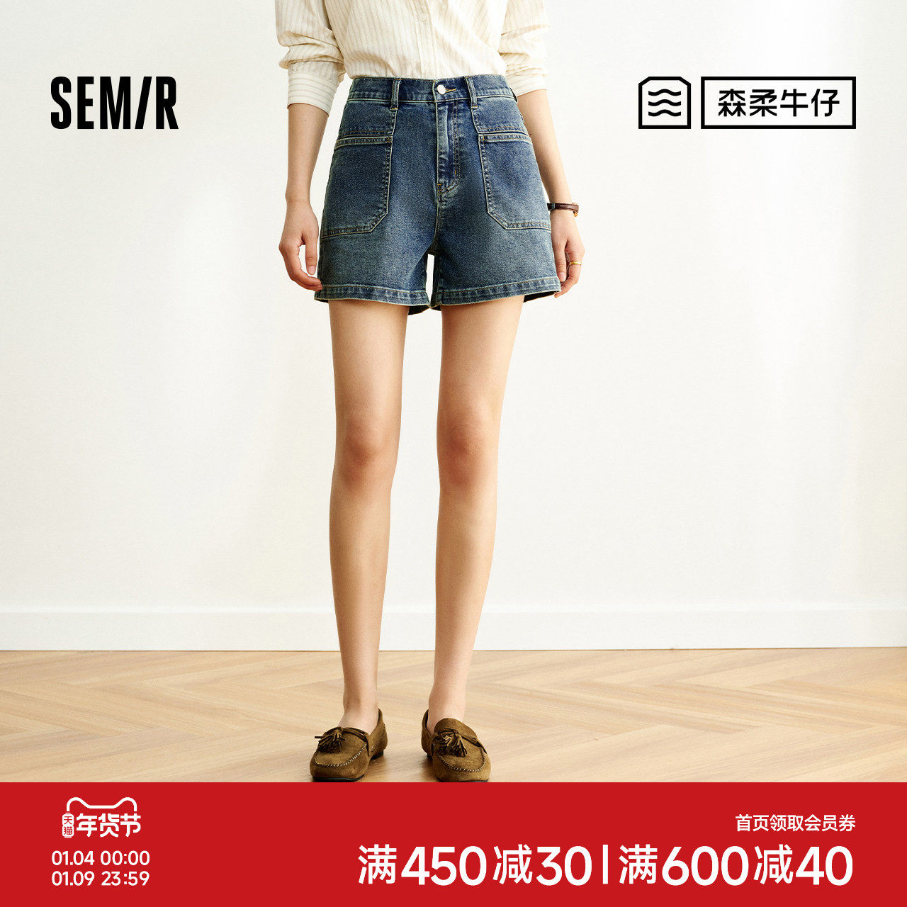 森柔牛仔|商场同款森马牛仔裤女半松紧腰2025新款夏时尚短裤潮流