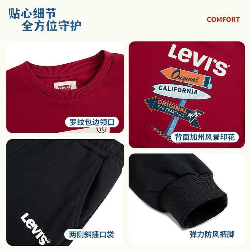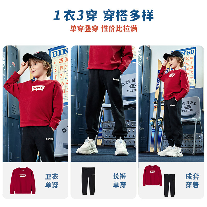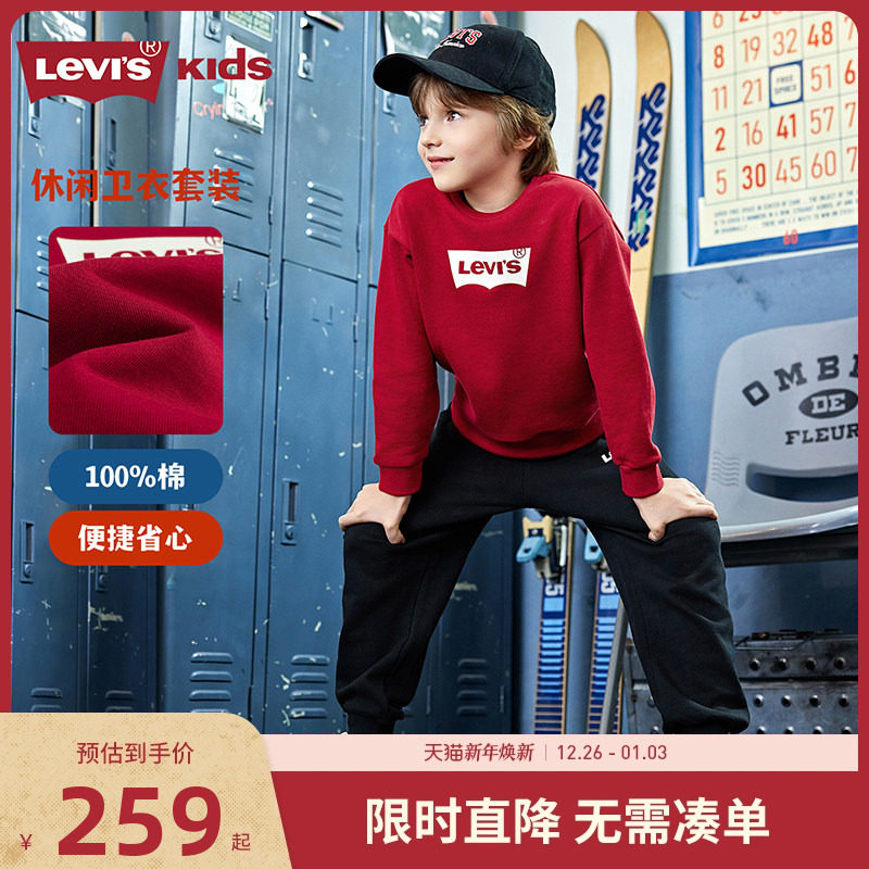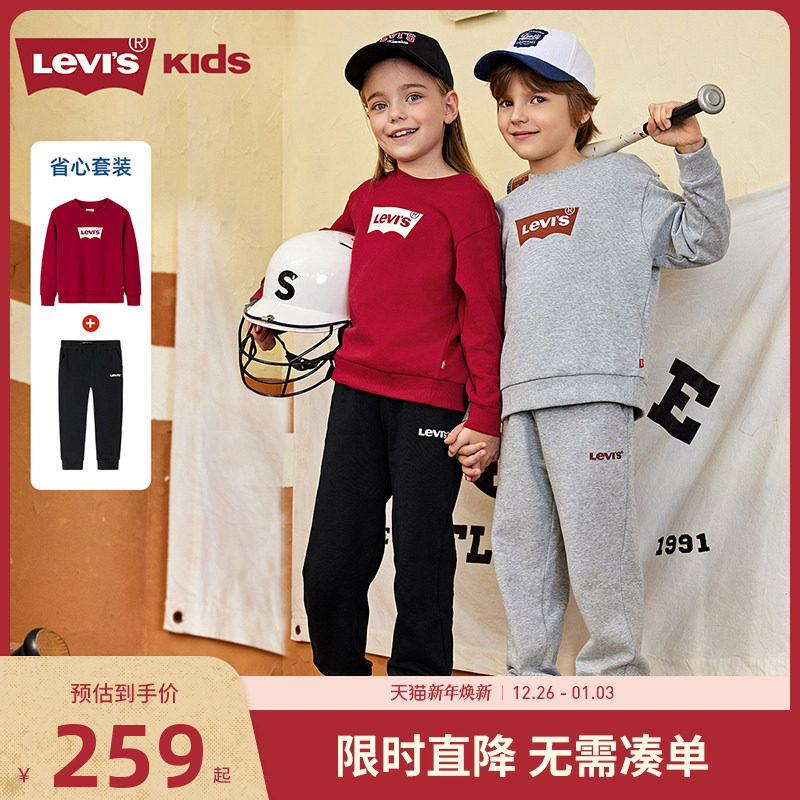 Levis李维斯儿童装男童套装卫衣长裤2件套2025新款女童运动套装棉