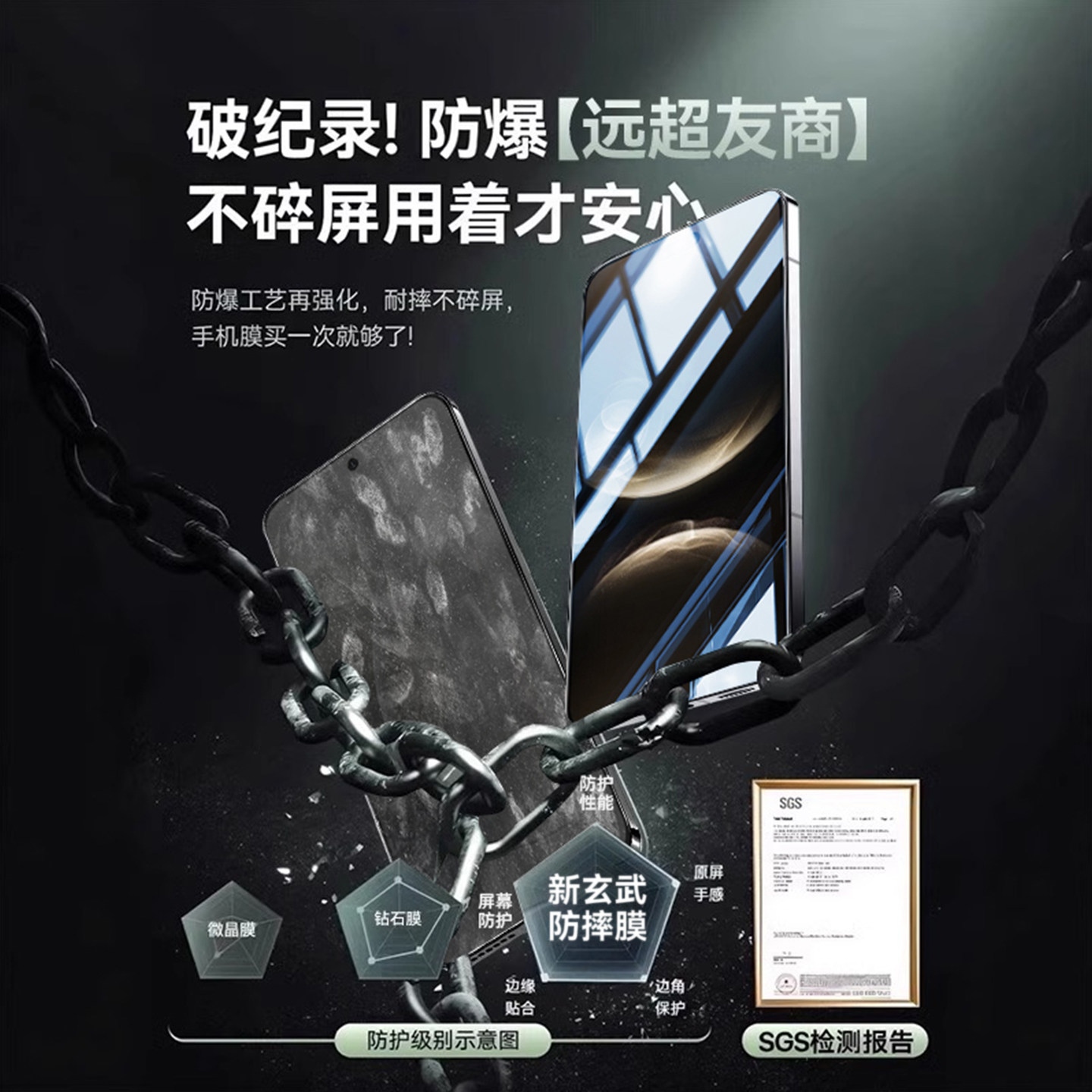 玄武防摔玻璃 爽滑无指纹 贴坏包赔