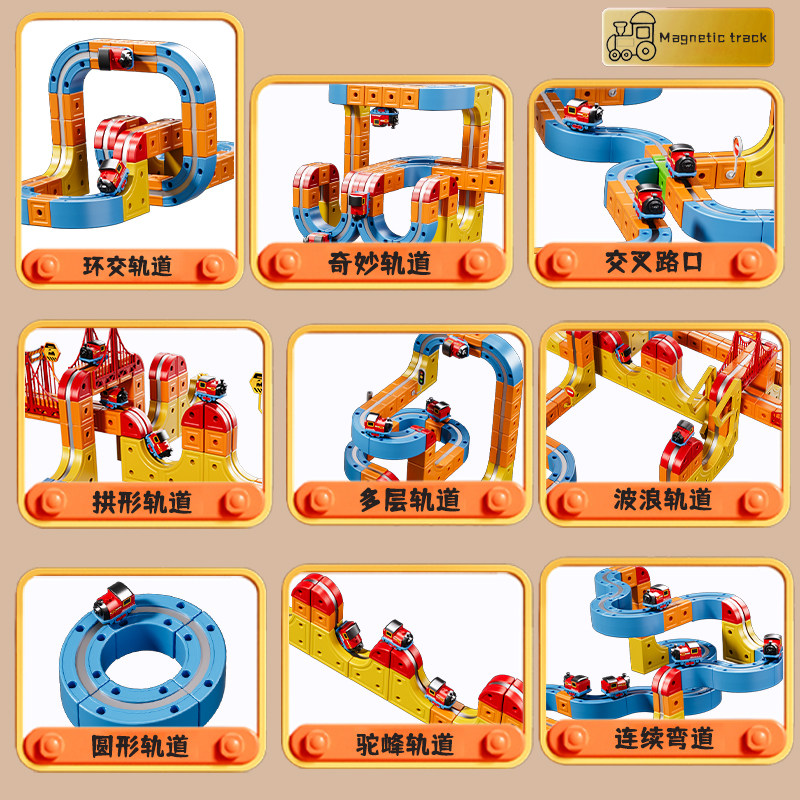2025新款磁力积木轨道车魔幻百变儿童女男孩益智生日礼物拼装玩具
