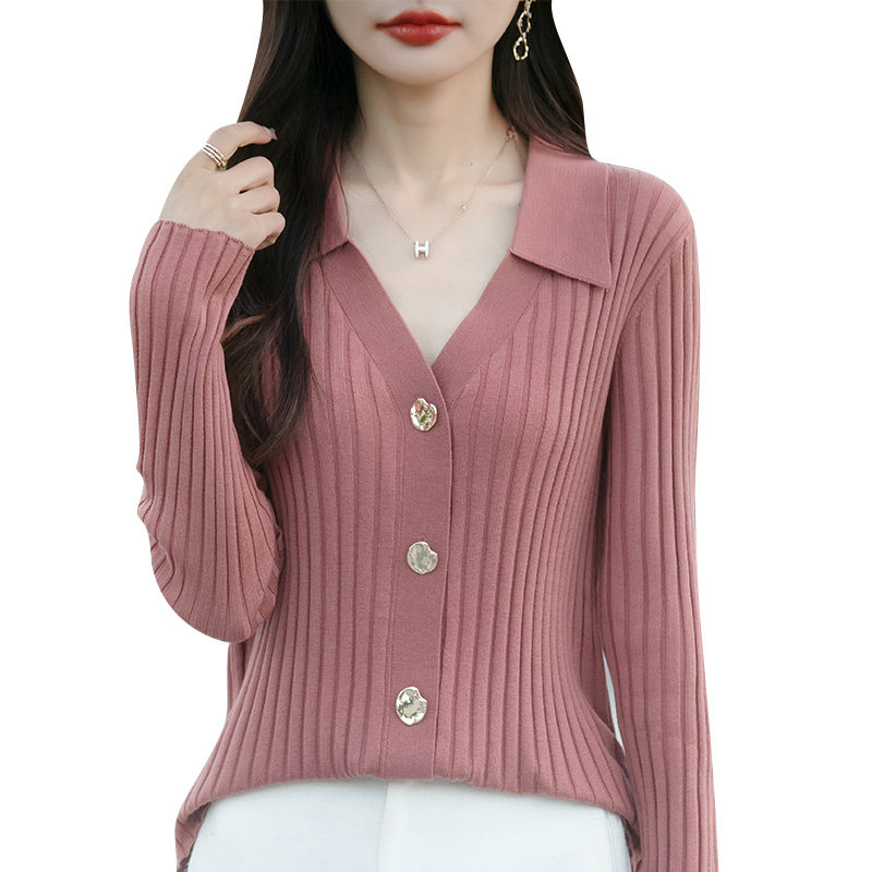 鄂尔多斯市断码羊绒开衫女春秋新款宽松毛衣外套翻领针织羊毛衫