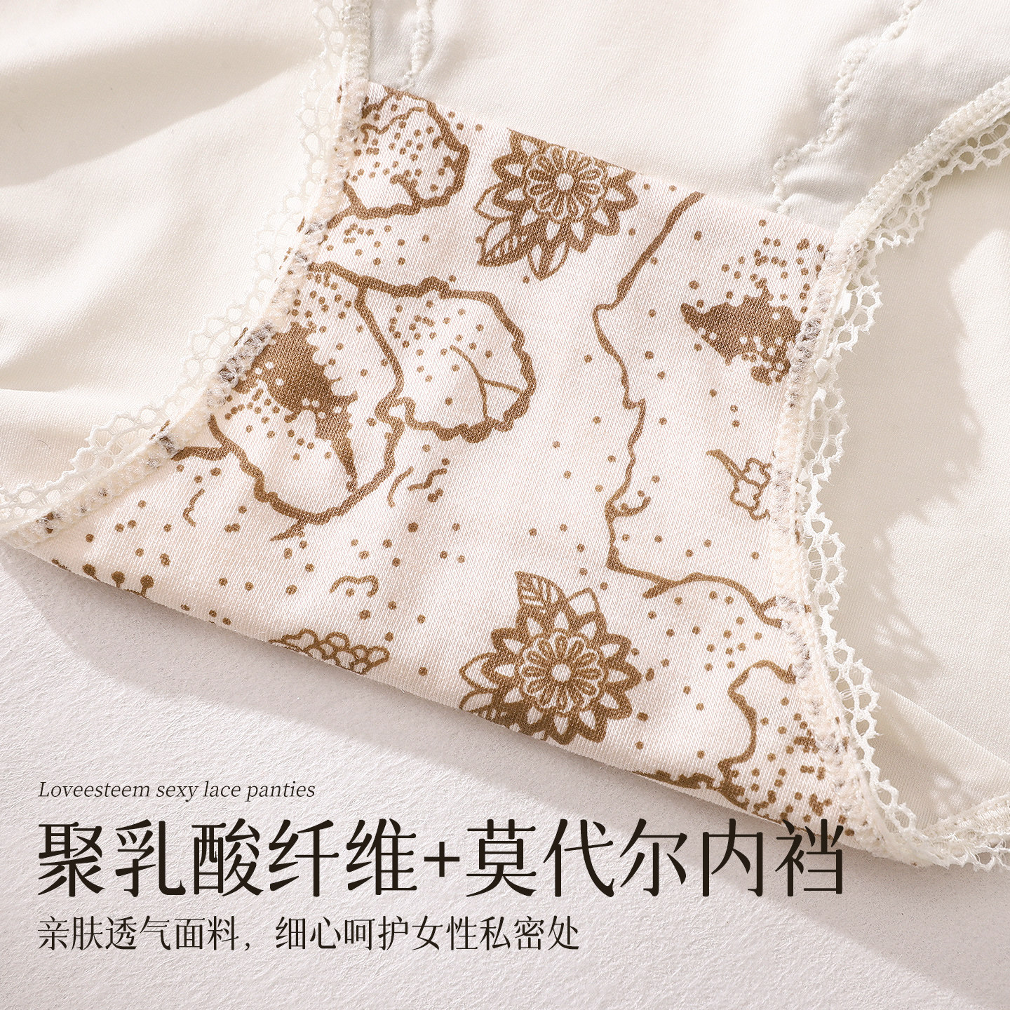 爱黛性感蕾丝裤头莫代尔底裆内裤女舒适包臀中腰平角裤A89215H-1