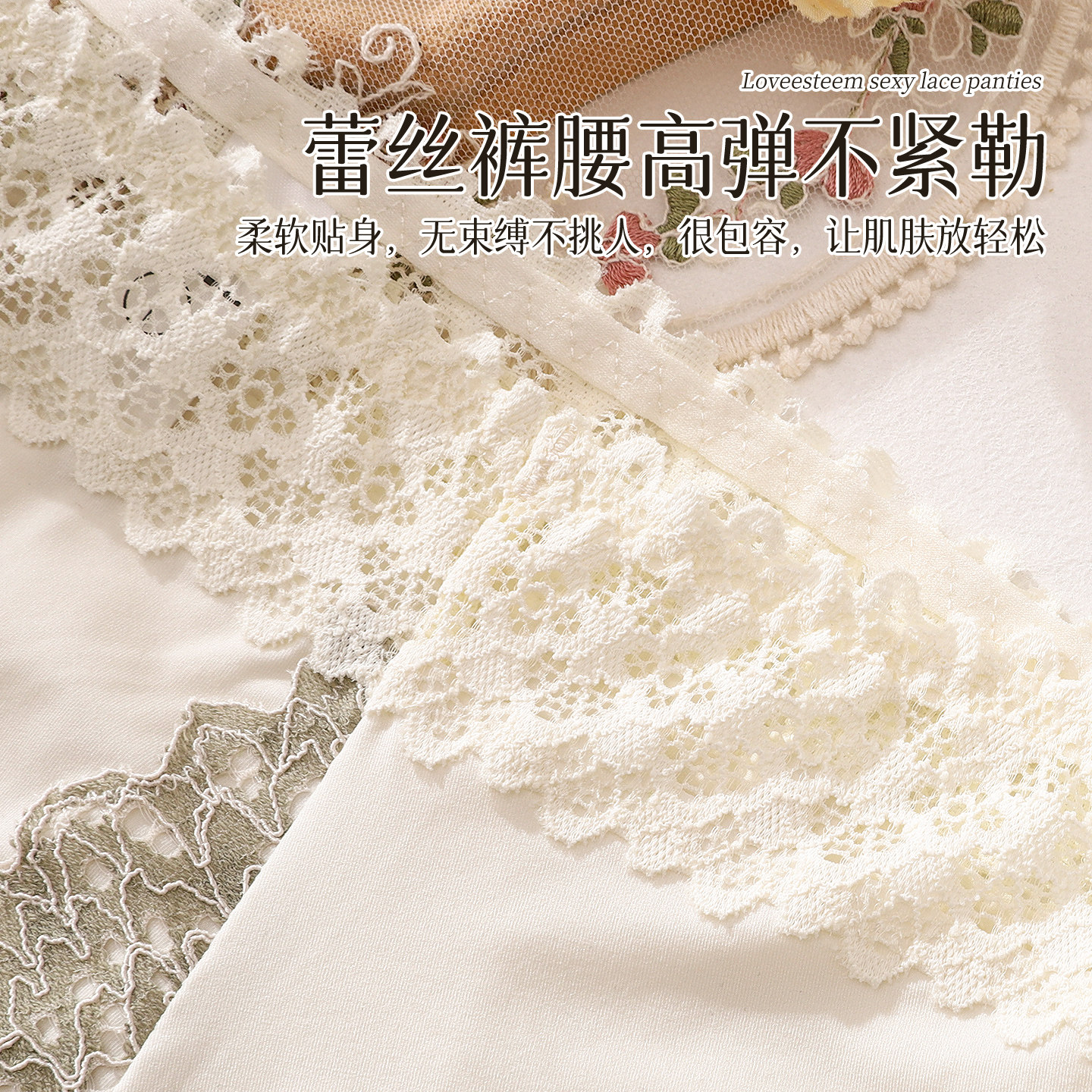 焕丽女王新中式浮雕绣花高腰桑蚕丝底裆全包臀三角女士无痕内裤女