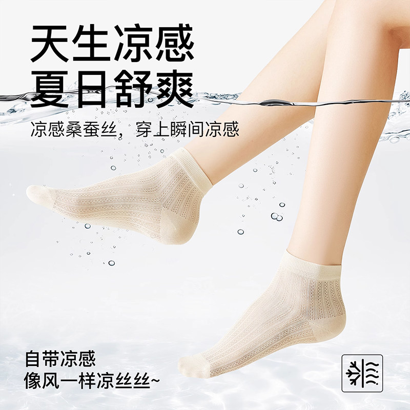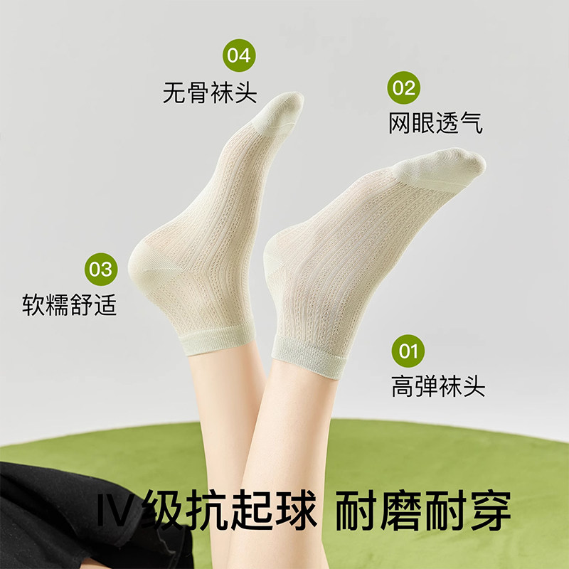袜子女夏季薄款桑蚕丝中筒袜网眼透气白色芭蕾风夏天女士棉质短袜