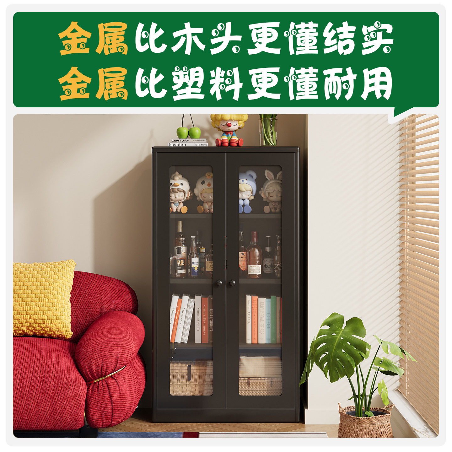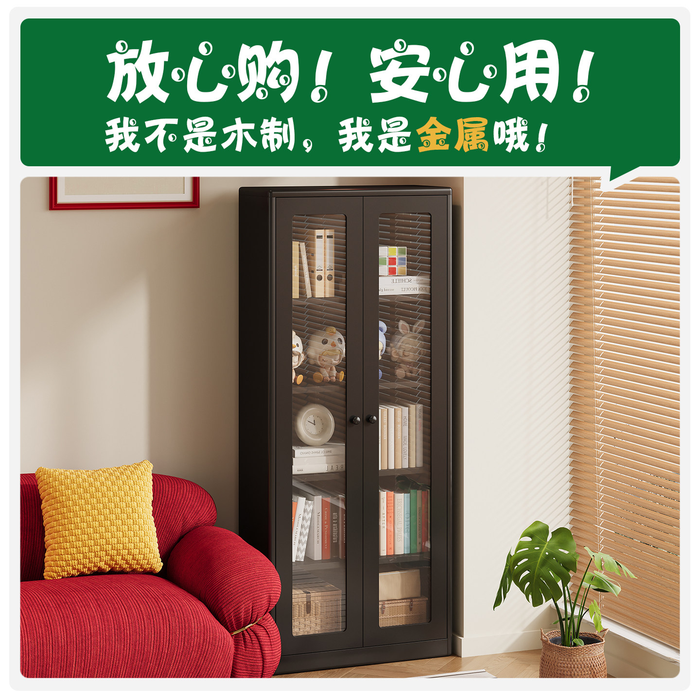 创意金属玻璃门书柜置物柜成品小户型家用客厅角落铁皮收纳储物柜
