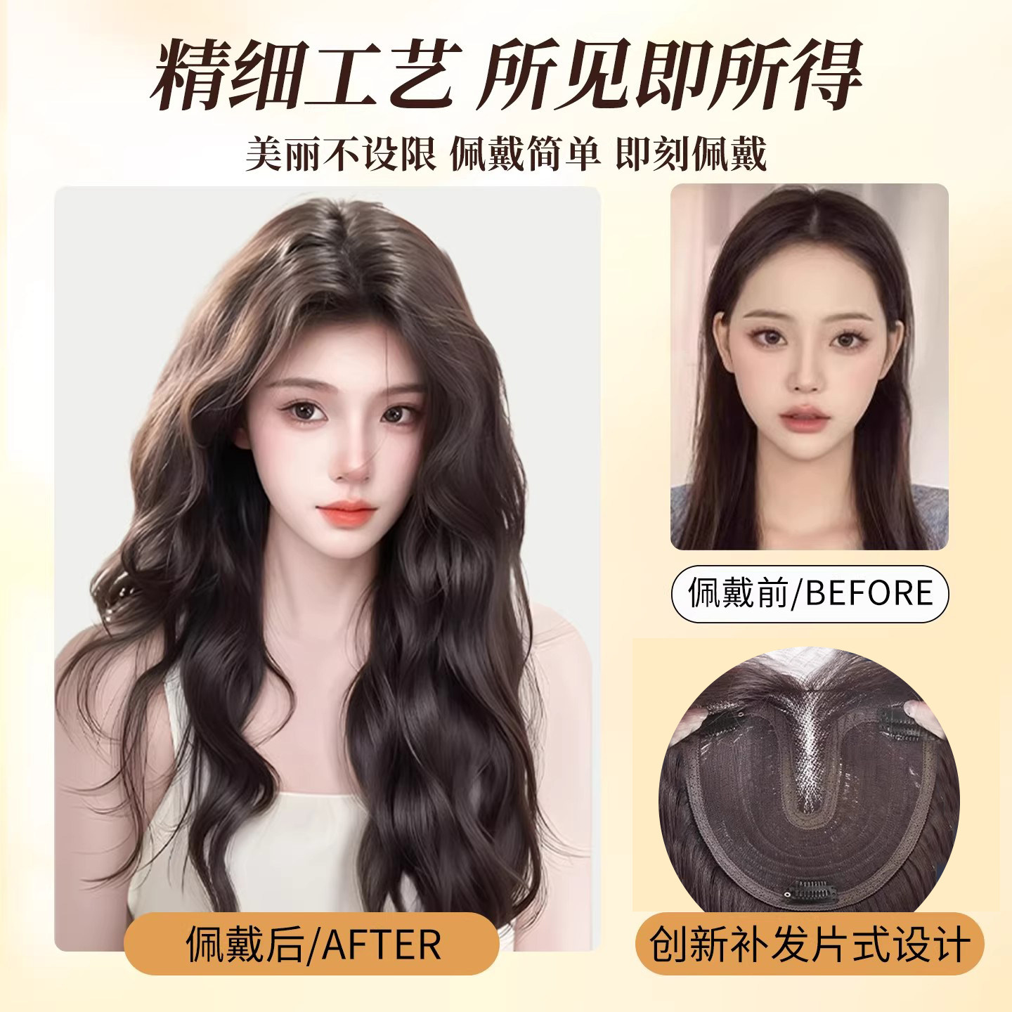 不用戴发网假发女顶仿真发高颅顶长卷发全头套波浪醒发发丝刘海