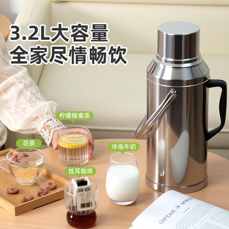 不锈钢热水瓶家用外壳暖水瓶保温暖壶保温瓶学生宿舍用水壶3.2L