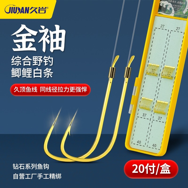 久岩鲫鱼钩金袖有无刺成品子线双钩野钓防缠绕正品绑好短子线袖钩