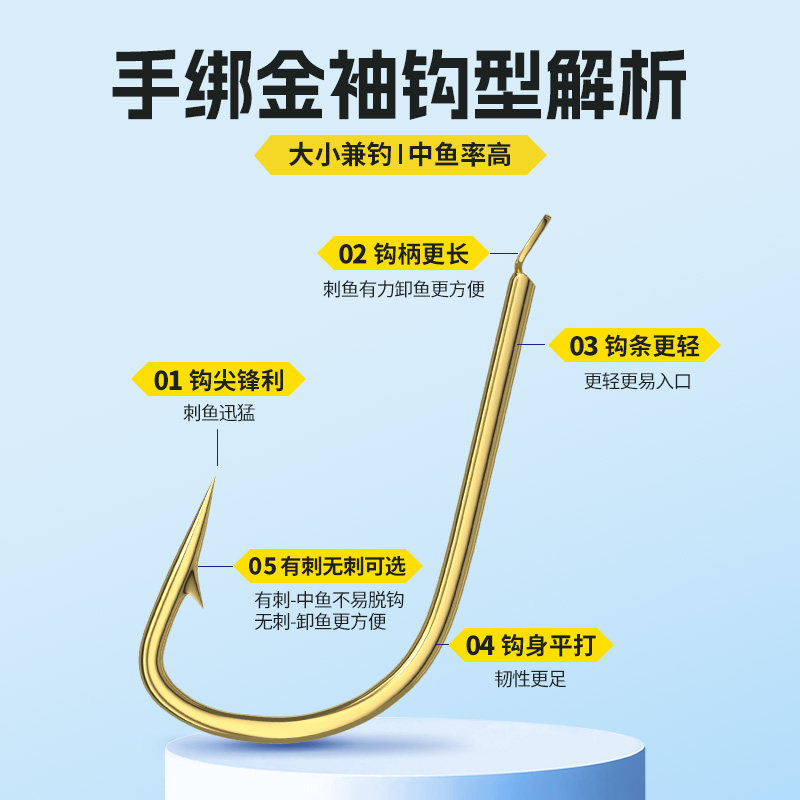 鱼钩绑好短子线双钩成品套装钓鱼袖钩金海夕金袖渔具野钓鲫鱼钩