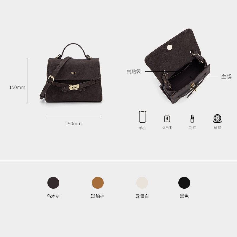新年礼物ELLE女包包包复古手提包翻盖小方包百搭超火小包斜挎包