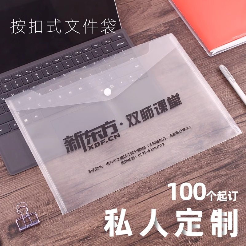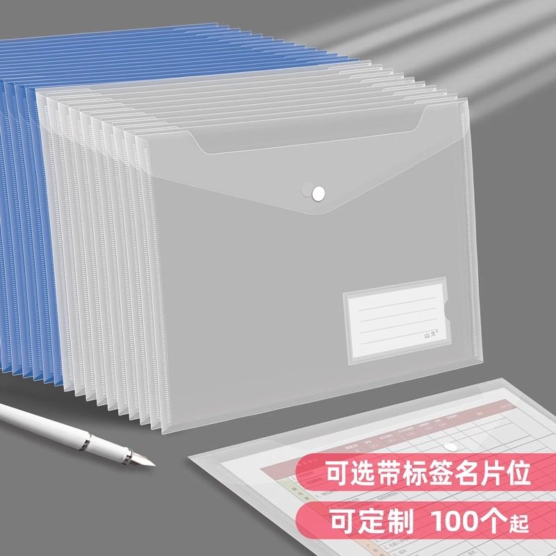 A4文件袋透明塑料加厚大容量按扣试卷收纳袋学生用档案资料袋文件夹包文具小学生商务办公用品定制LOGO公文