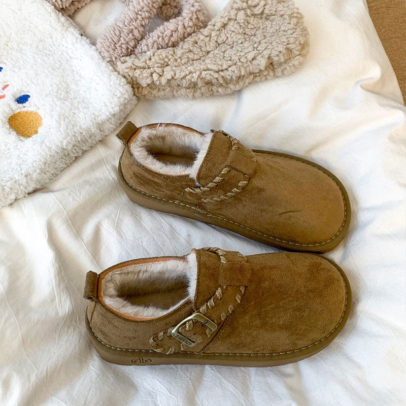 平底勃肯鞋女加绒保暖雪地靴女2025新款冬季乐福鞋豆豆鞋博肯棉鞋