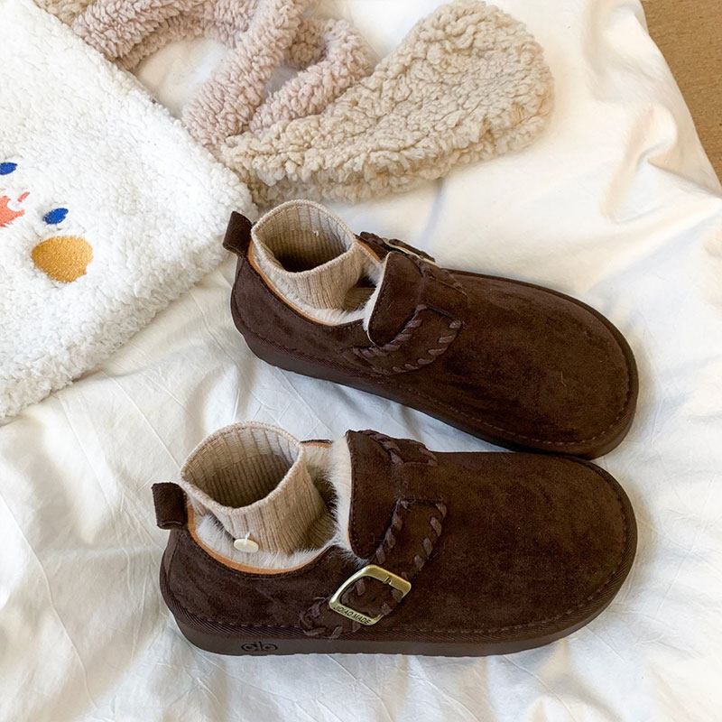 TATAFOCUS~加绒毛毛鞋韩版圆头皮带扣2025冬季新款勃肯鞋女35-28