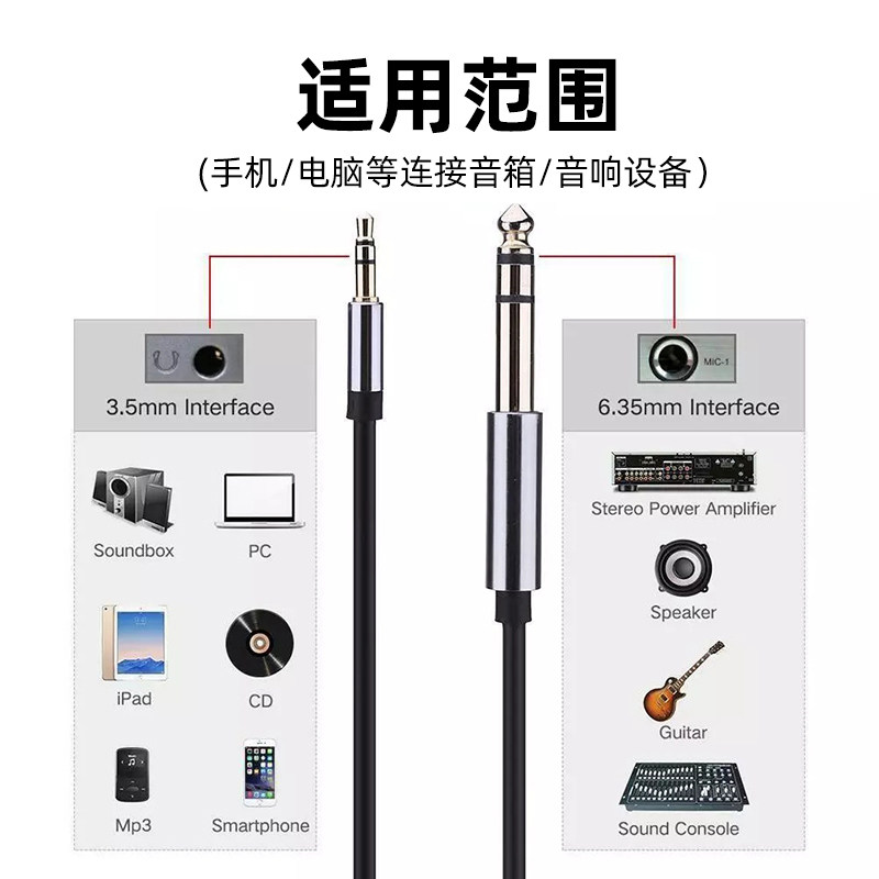 非凡舞3.5转6.5音频线手机IPAD架子鼓电钢琴音箱连接大三芯立体声