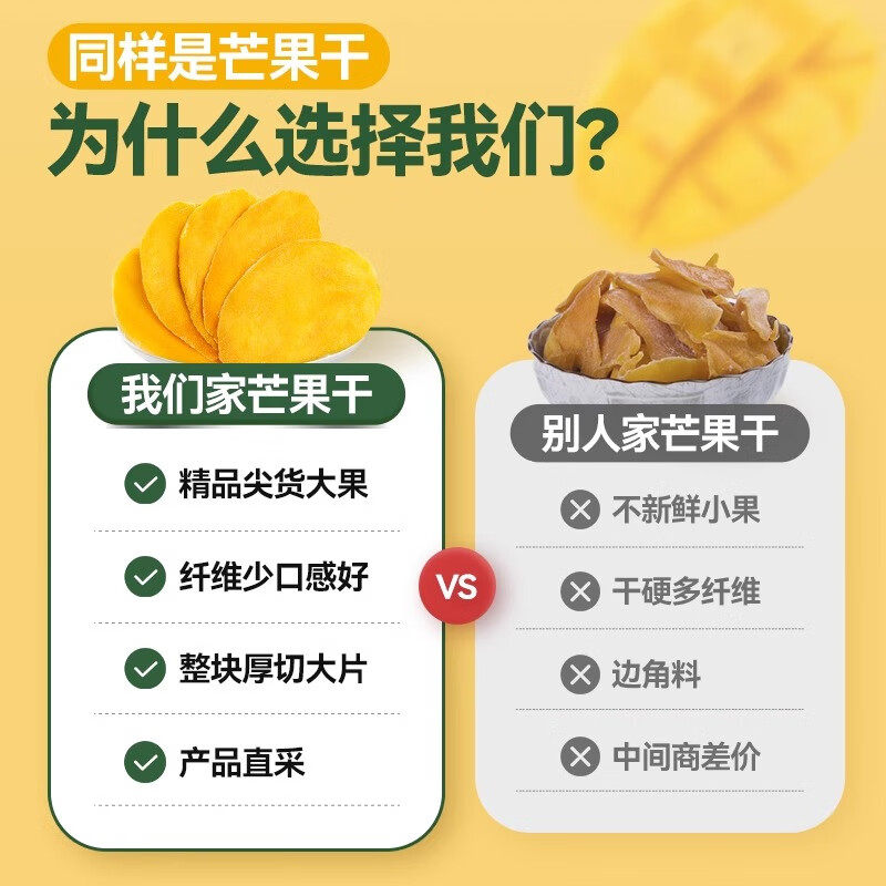 华味亨厚切芒果干500g水果干果脯蜜饯零食品芒果肉特产-T6优选