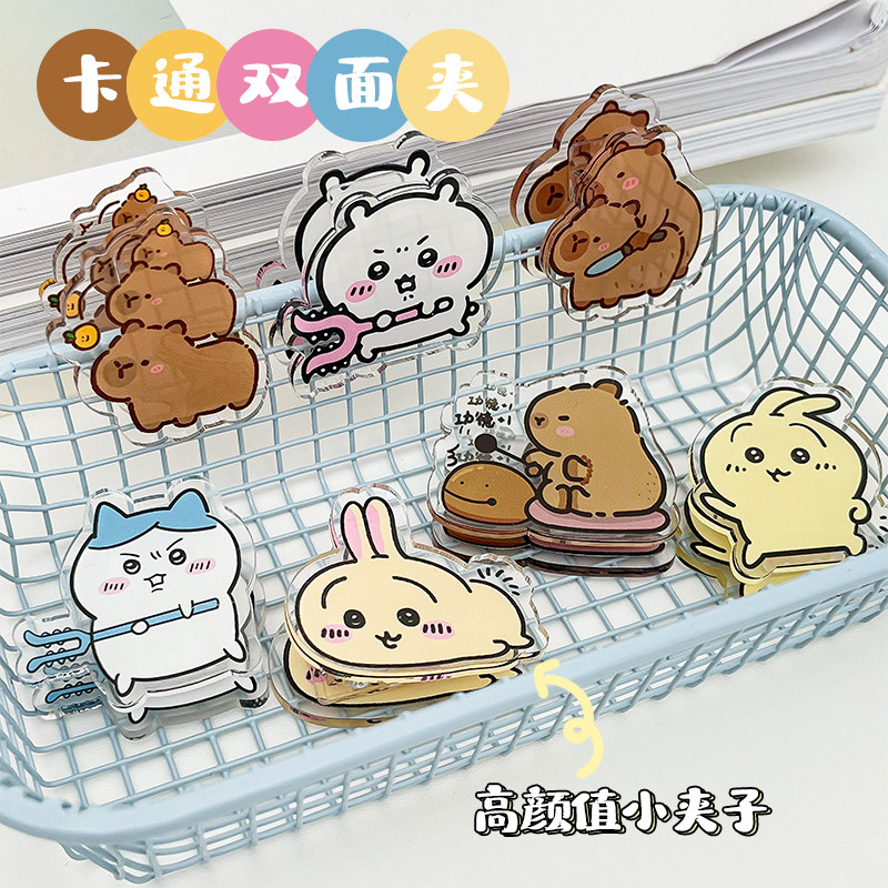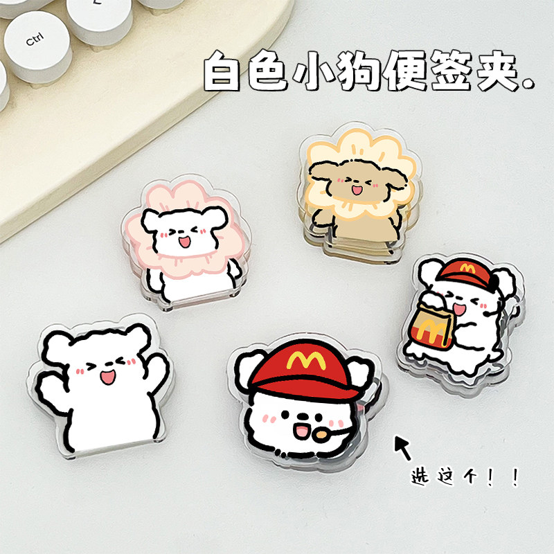 卡通小狗便签夹亚克力双面夹ins风高颜值PP夹创意可爱学生试卷文件夹儿童女孩礼物手帐夹多功能照片夹封口夹