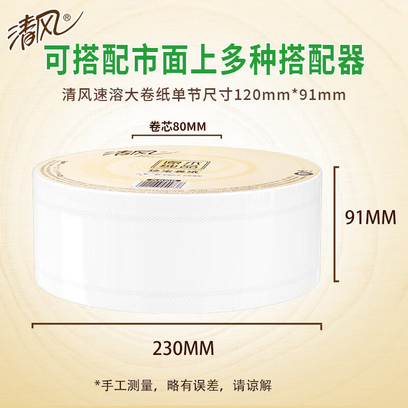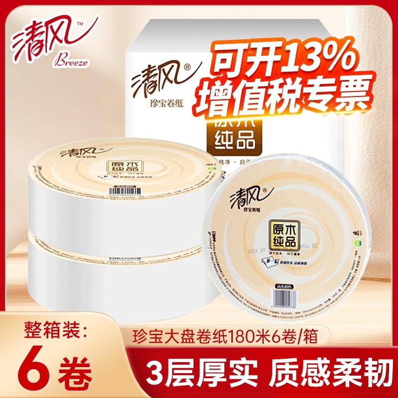 清风大卷纸商用厕纸卫生纸大盘纸巾酒店KTV专用卷筒纸家用整箱6卷